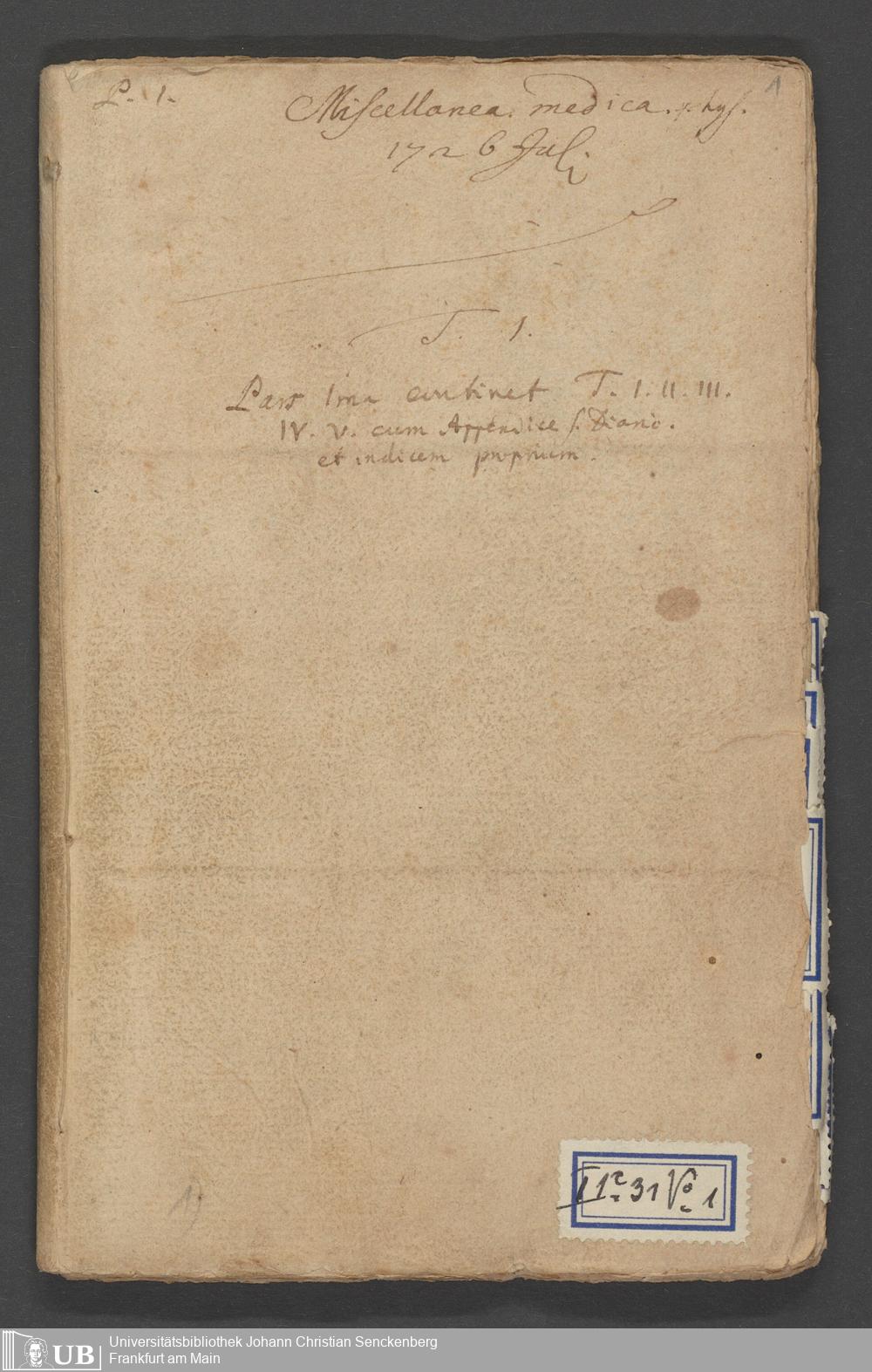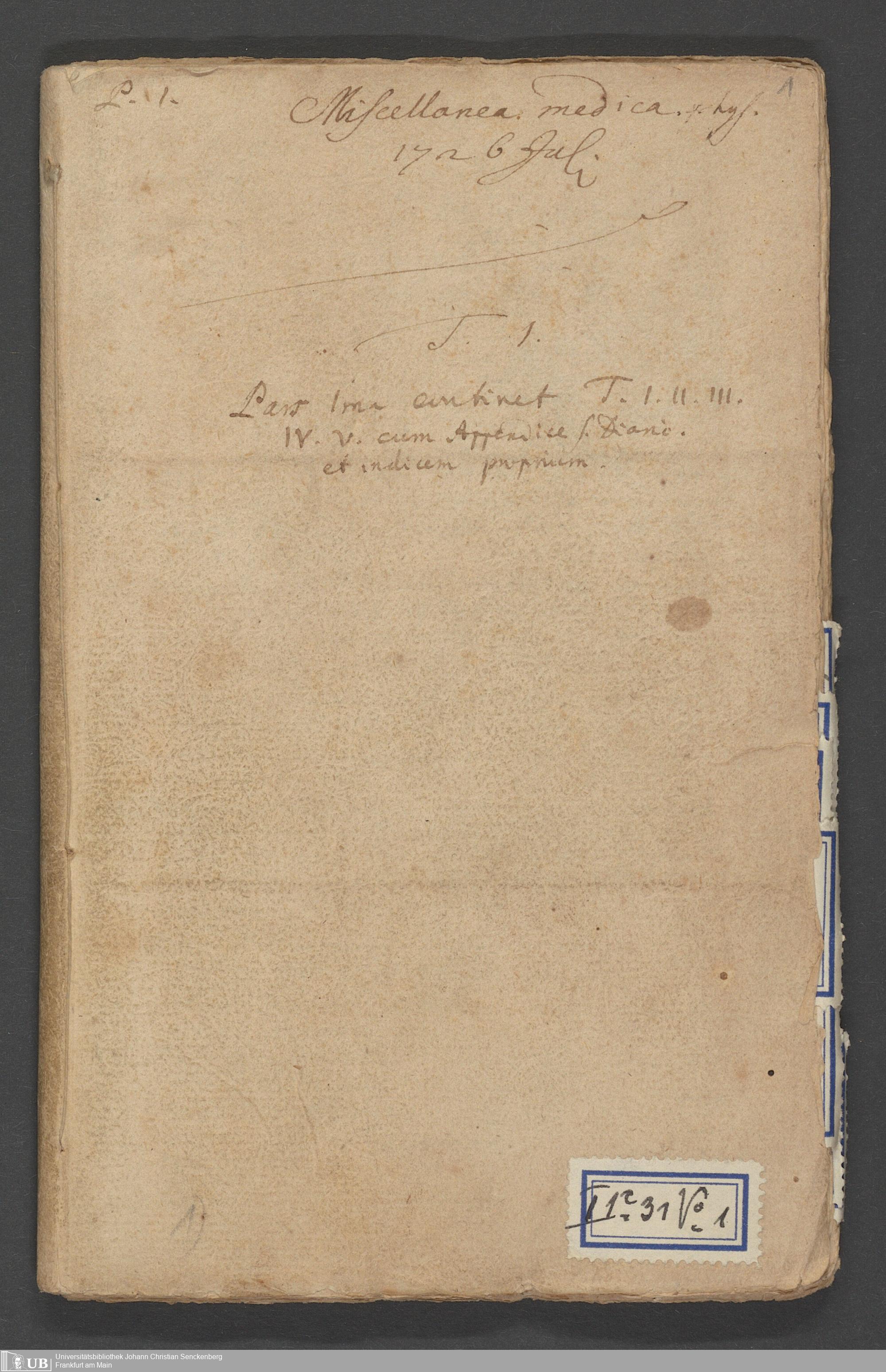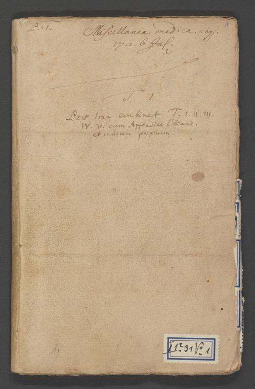Na 31 Nachlass Johann Christian Senckenberg, 90 - "Miscellanea medica" (Heft 1-5) (p. I.1.c.31)