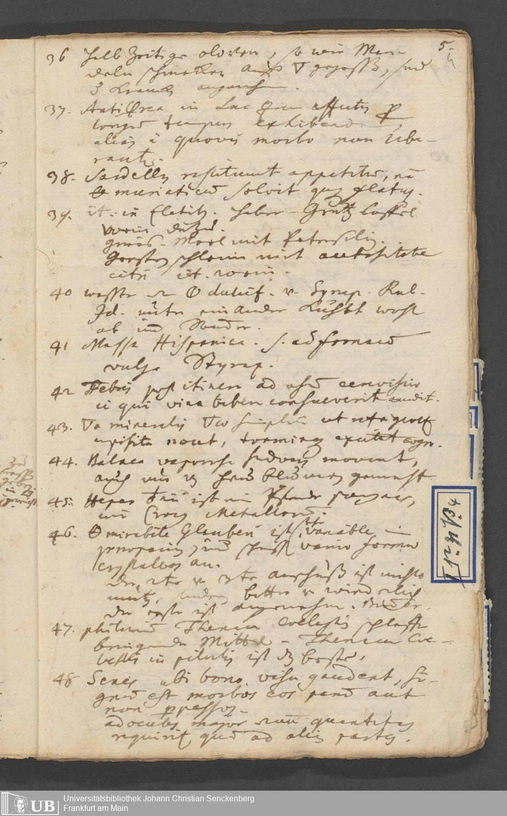 Na 31 Nachlass Johann Christian Senckenberg, 90 - "Miscellanea medica" (Heft 1-5) (p. I.1.c.31)