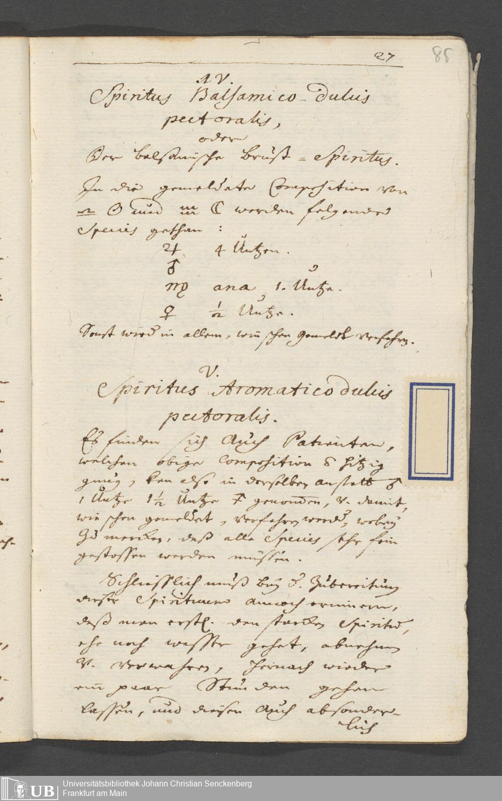 Na 31 Nachlass Johann Christian Senckenberg, 92 - Rariora medica