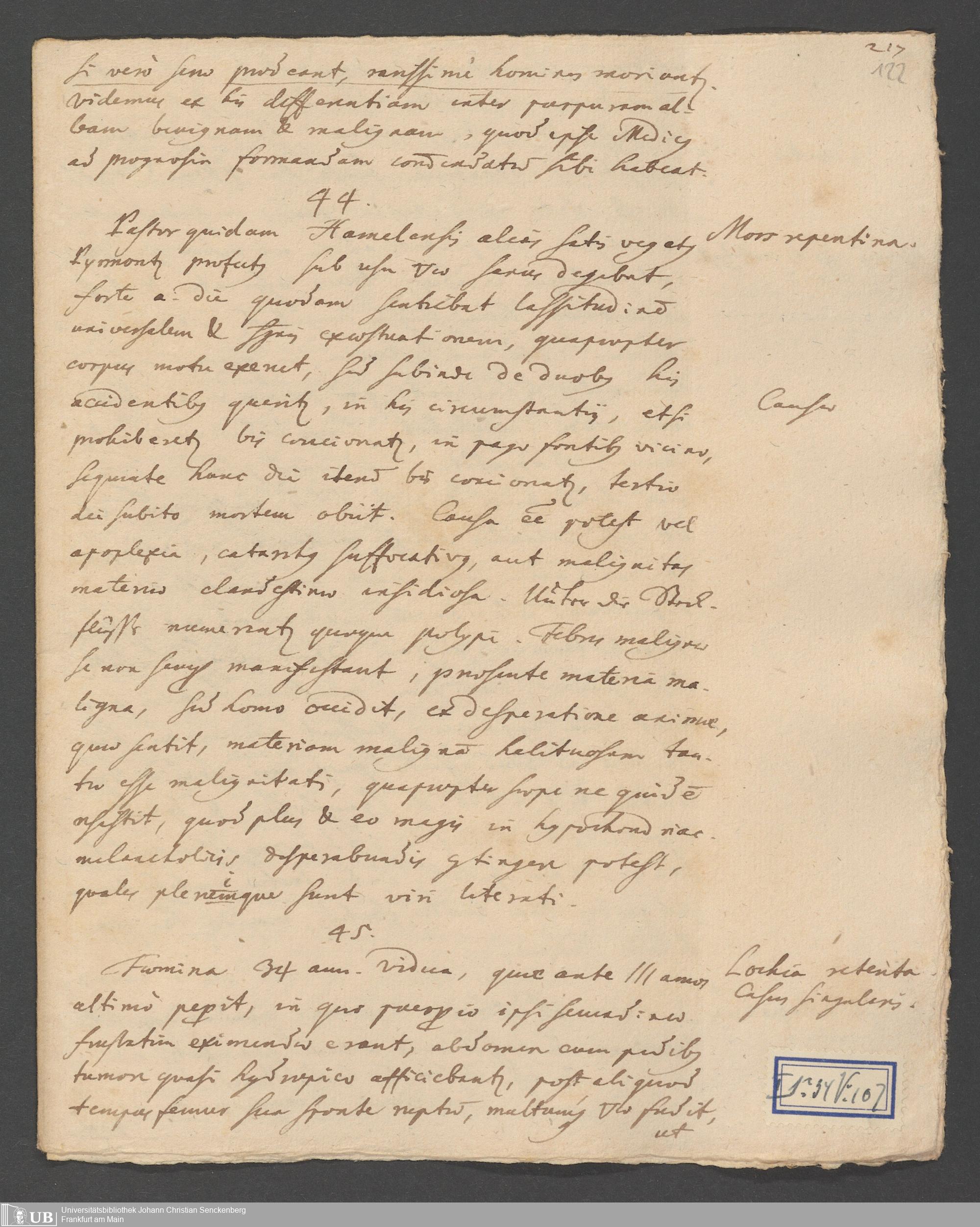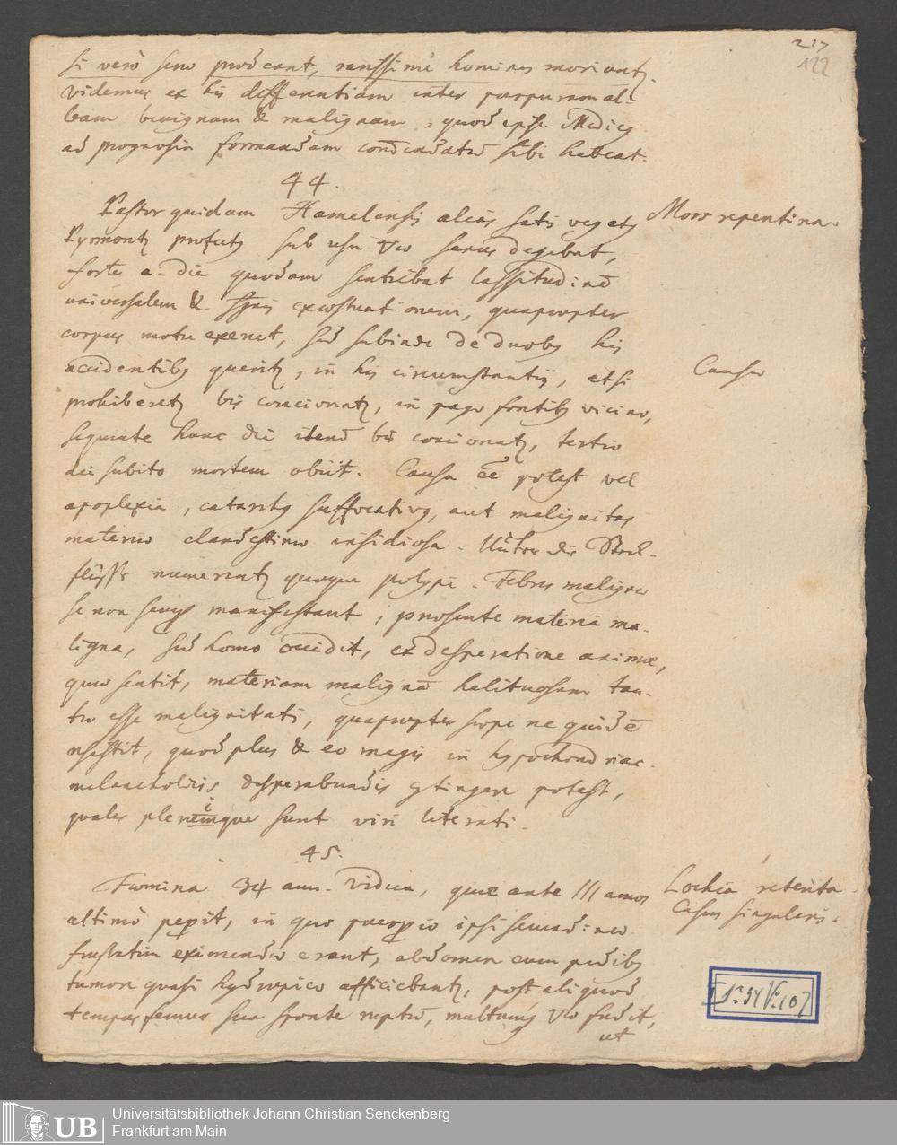 Na 31 Nachlass Johann Christian Senckenberg, 95 - Medicum Collegium