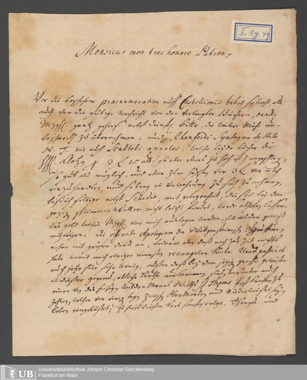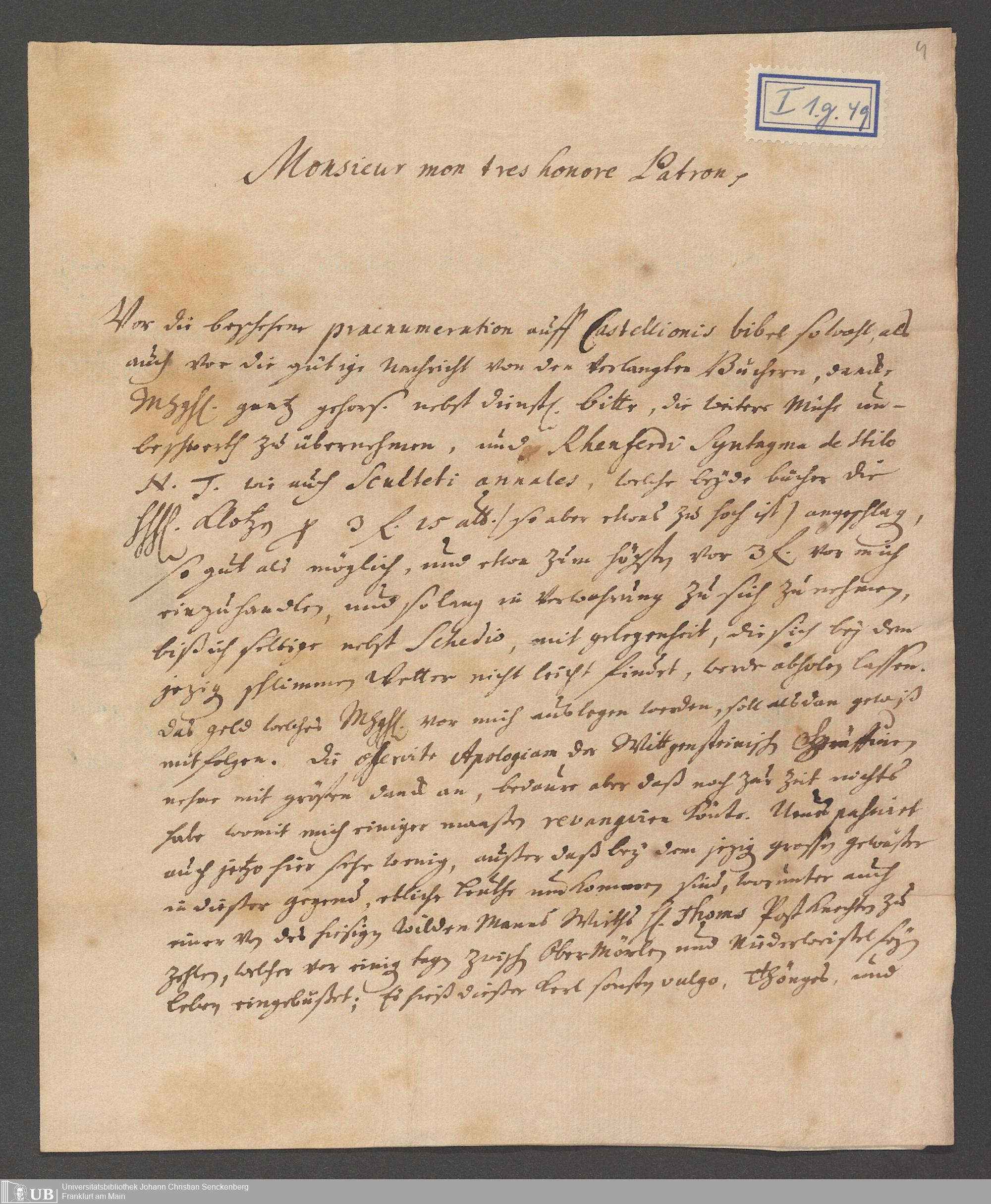 Na 31 Nachlass Johann Christian Senckenberg, 110 - Briefe an Johann Christian Senckenberg von verschiedenen Absender (A-D) (p. I.1.g.49)