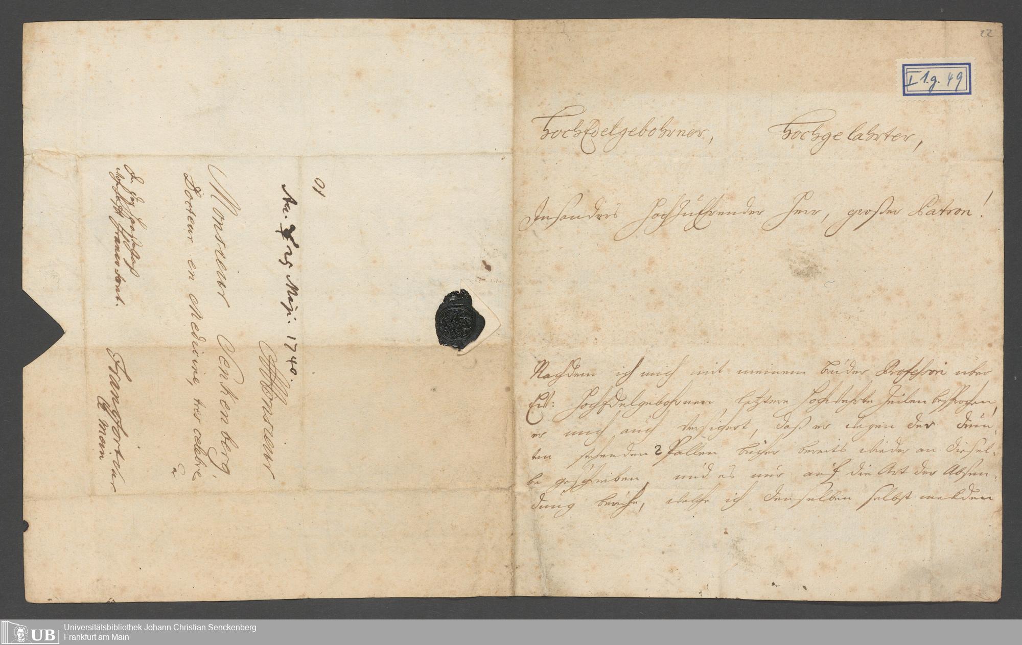 Na 31 Nachlass Johann Christian Senckenberg, 110 - Briefe an Johann Christian Senckenberg von verschiedenen Absender (A-D) (p. I.1.g.49)