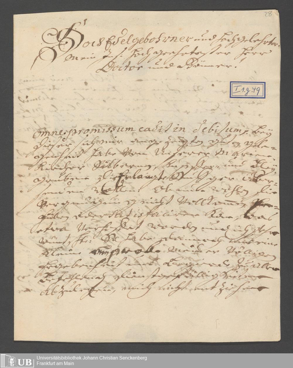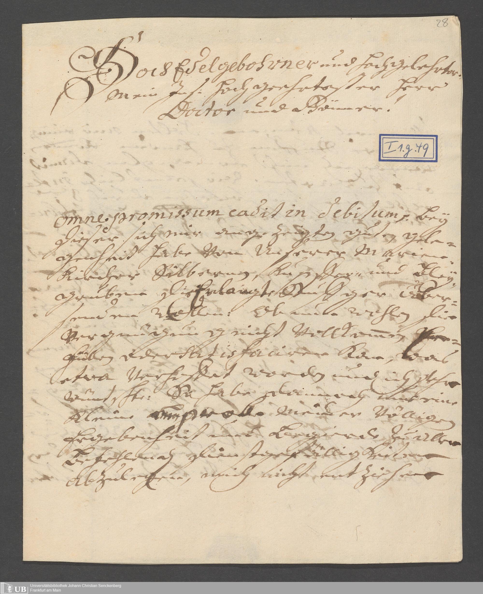 Na 31 Nachlass Johann Christian Senckenberg, 110 - Briefe an Johann Christian Senckenberg von verschiedenen Absender (A-D) (p. I.1.g.49)