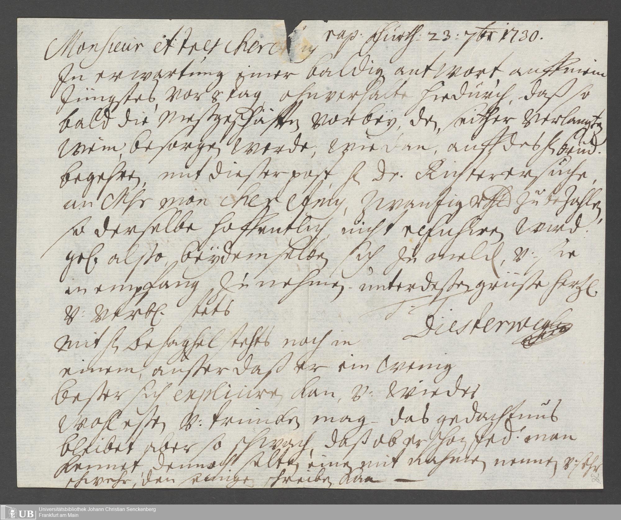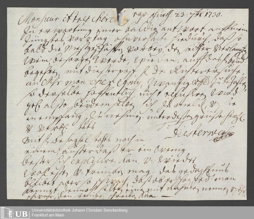 Na 31 Nachlass Johann Christian Senckenberg, 110 - Briefe an Johann Christian Senckenberg von verschiedenen Absender (A-D) (p. I.1.g.49)