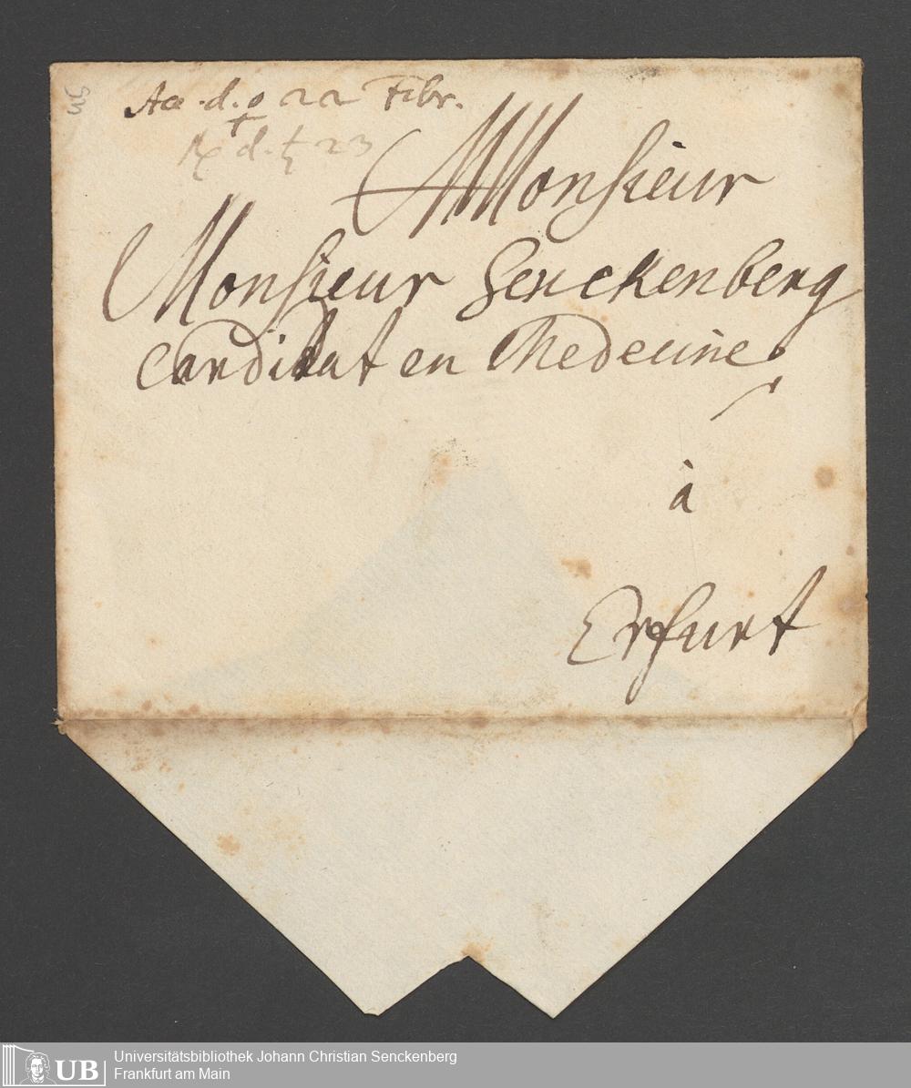 Na 31 Nachlass Johann Christian Senckenberg, 110 - Briefe an Johann Christian Senckenberg von verschiedenen Absender (A-D) (p. I.1.g.49)