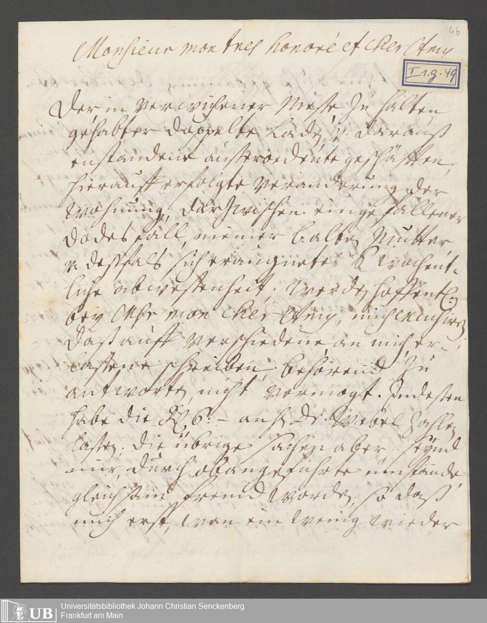 Na 31 Nachlass Johann Christian Senckenberg, 110 - Briefe an Johann Christian Senckenberg von verschiedenen Absender (A-D) (p. I.1.g.49)