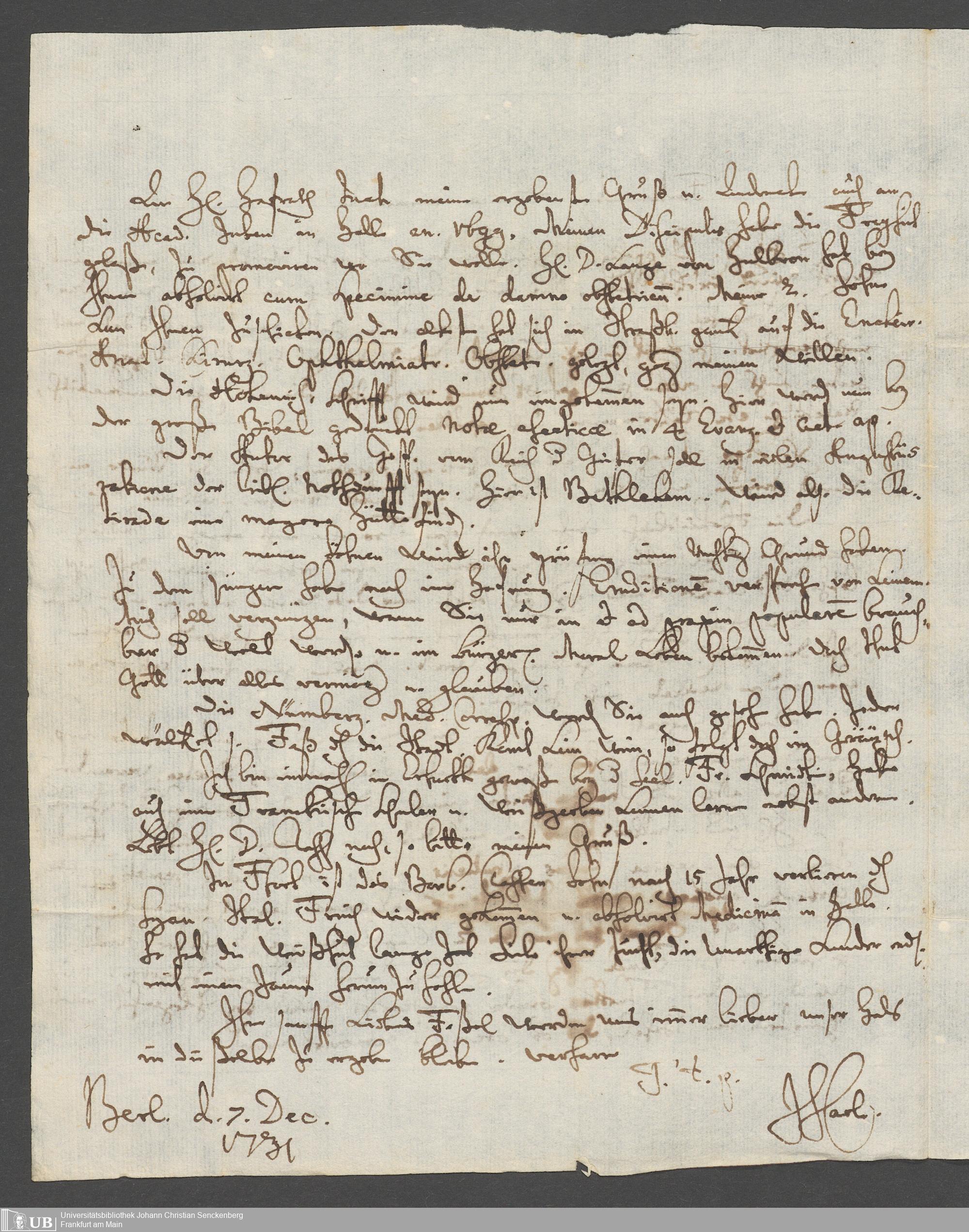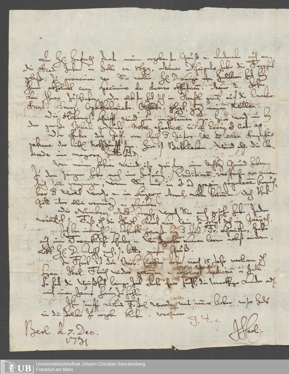 Na 31 Nachlass Johann Christian Senckenberg, 110 - Briefe an Johann Christian Senckenberg von verschiedenen Absender (A-D) (p. I.1.g.49)