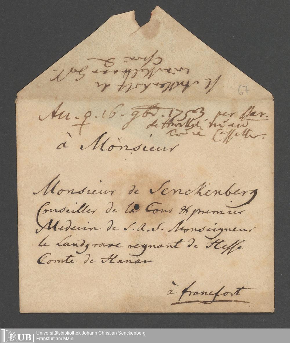Na 31 Nachlass Johann Christian Senckenberg, 110 - Briefe an Johann Christian Senckenberg von verschiedenen Absender (A-D) (p. I.1.g.49)