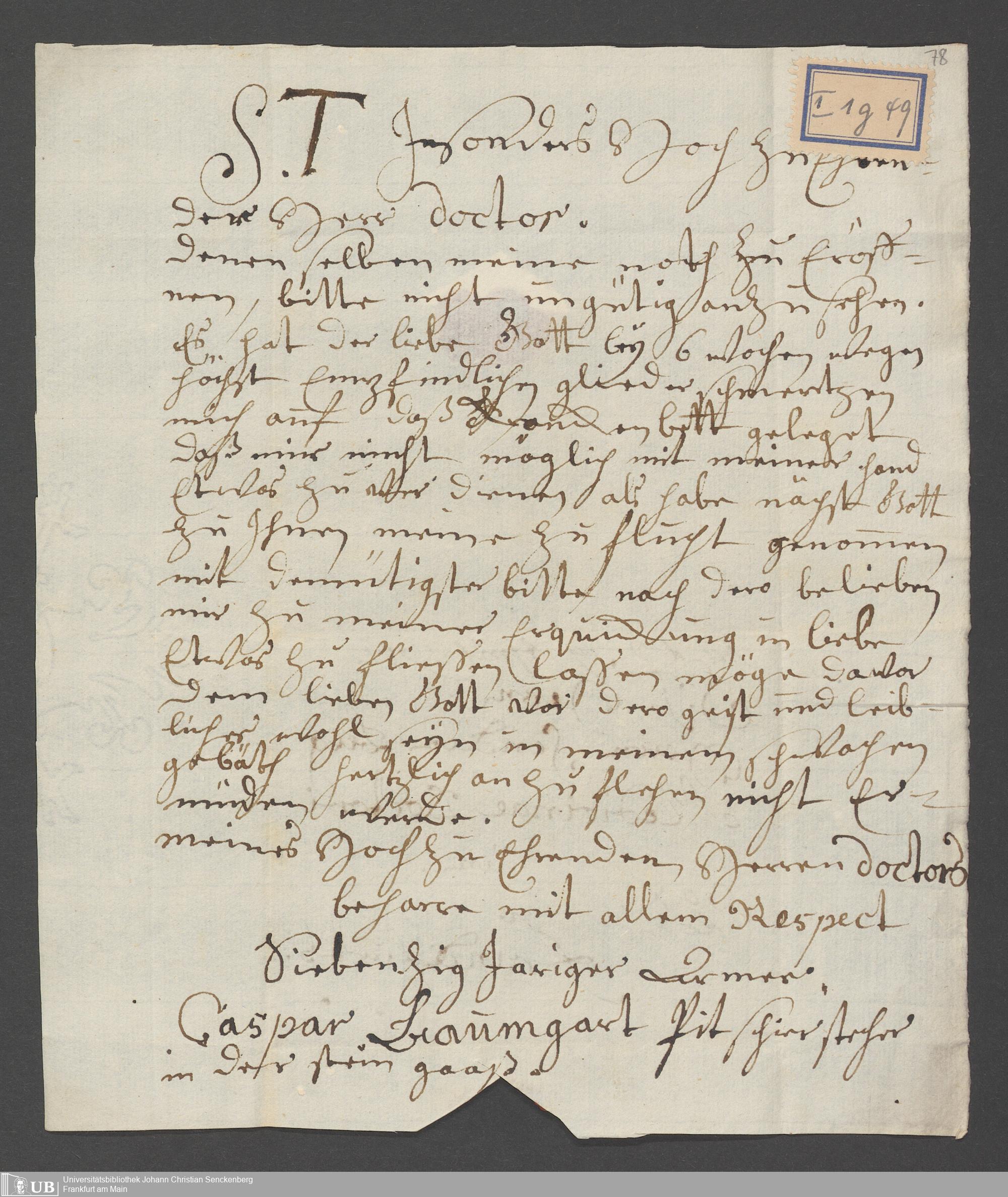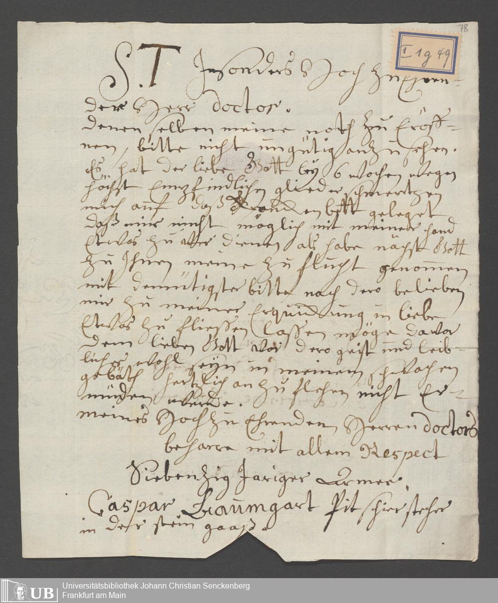 Na 31 Nachlass Johann Christian Senckenberg, 110 - Briefe an Johann Christian Senckenberg von verschiedenen Absender (A-D) (p. I.1.g.49)
