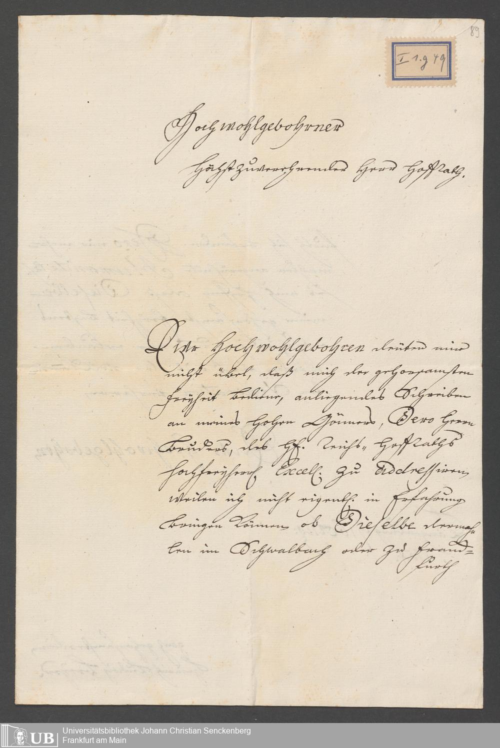 Na 31 Nachlass Johann Christian Senckenberg, 110 - Briefe an Johann Christian Senckenberg von verschiedenen Absender (A-D) (p. I.1.g.49)
