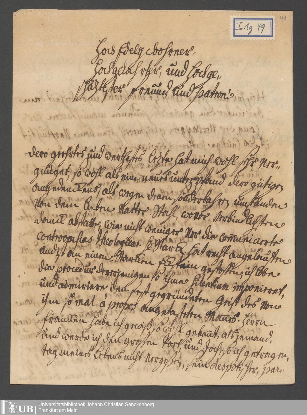 Na 31 Nachlass Johann Christian Senckenberg, 110 - Briefe an Johann Christian Senckenberg von verschiedenen Absender (A-D) (p. I.1.g.49)