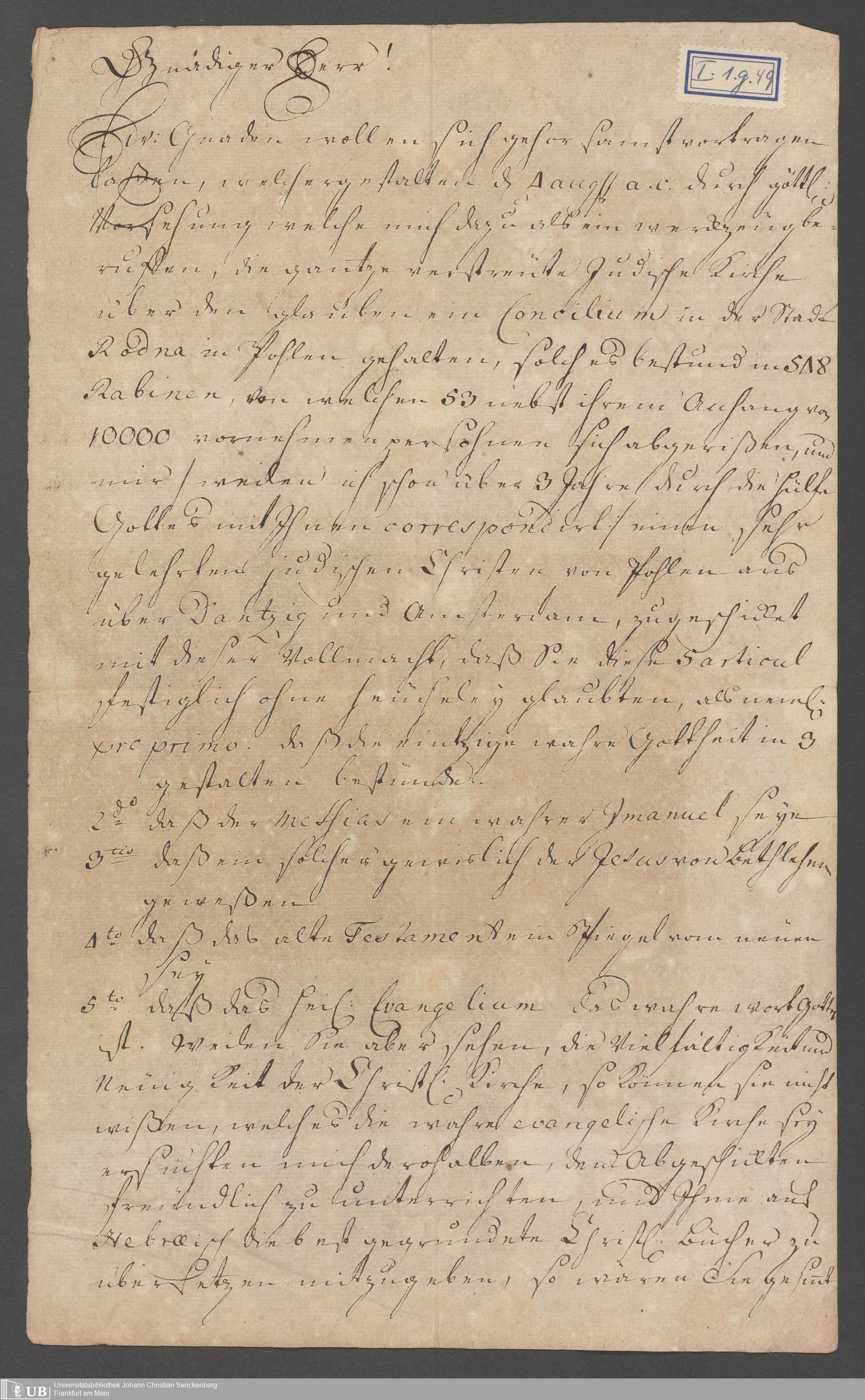 Na 31 Nachlass Johann Christian Senckenberg, 110 - Briefe an Johann Christian Senckenberg von verschiedenen Absender (A-D) (p. I.1.g.49)