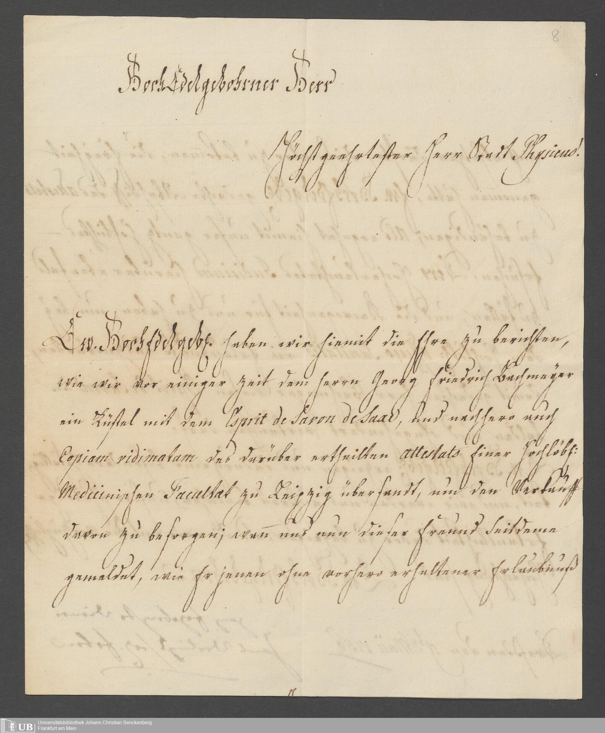 Na 31 Nachlass Johann Christian Senckenberg, 111 - Briefe an Johann Christian Senckenberg von verschiedenen Absendern (E-Z) (p. I.1.g.50)