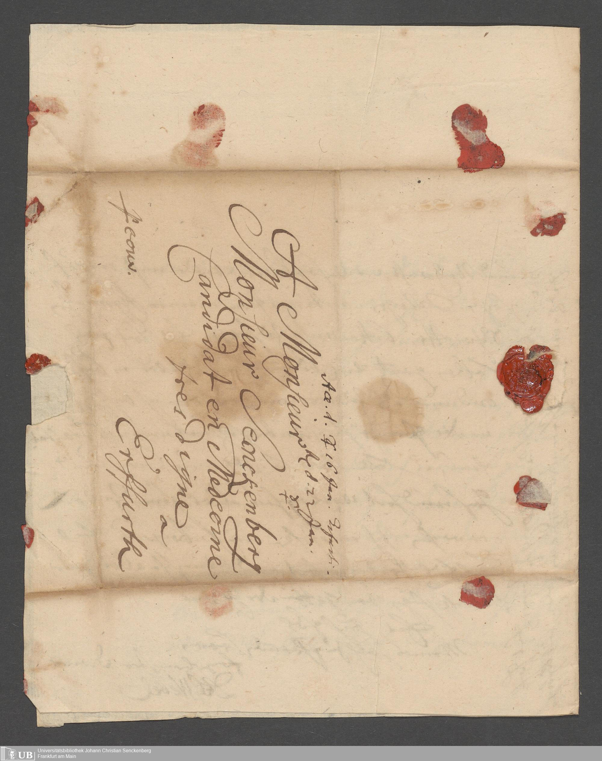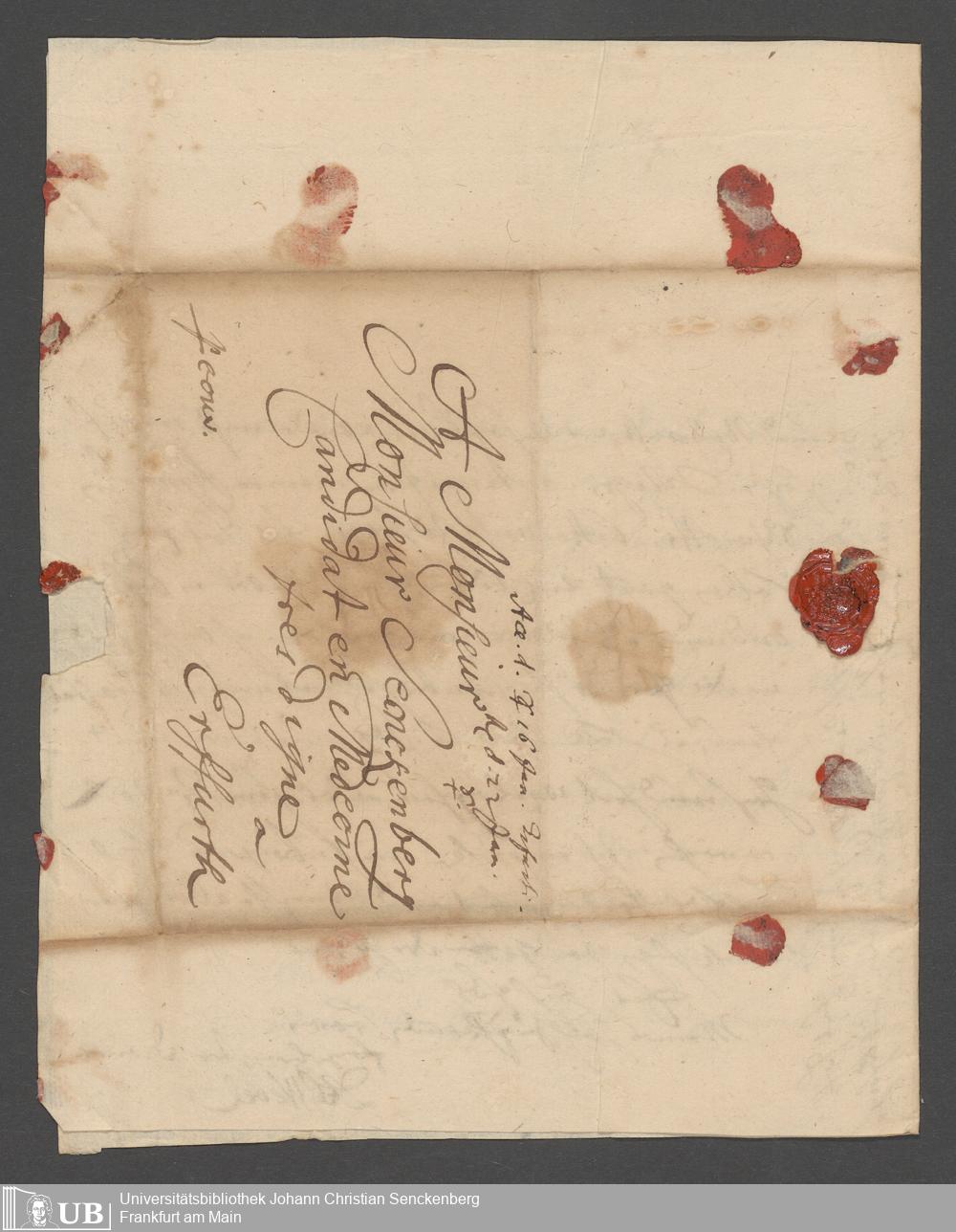 Na 31 Nachlass Johann Christian Senckenberg, 111 - Briefe an Johann Christian Senckenberg von verschiedenen Absendern (E-Z) (p. I.1.g.50)
