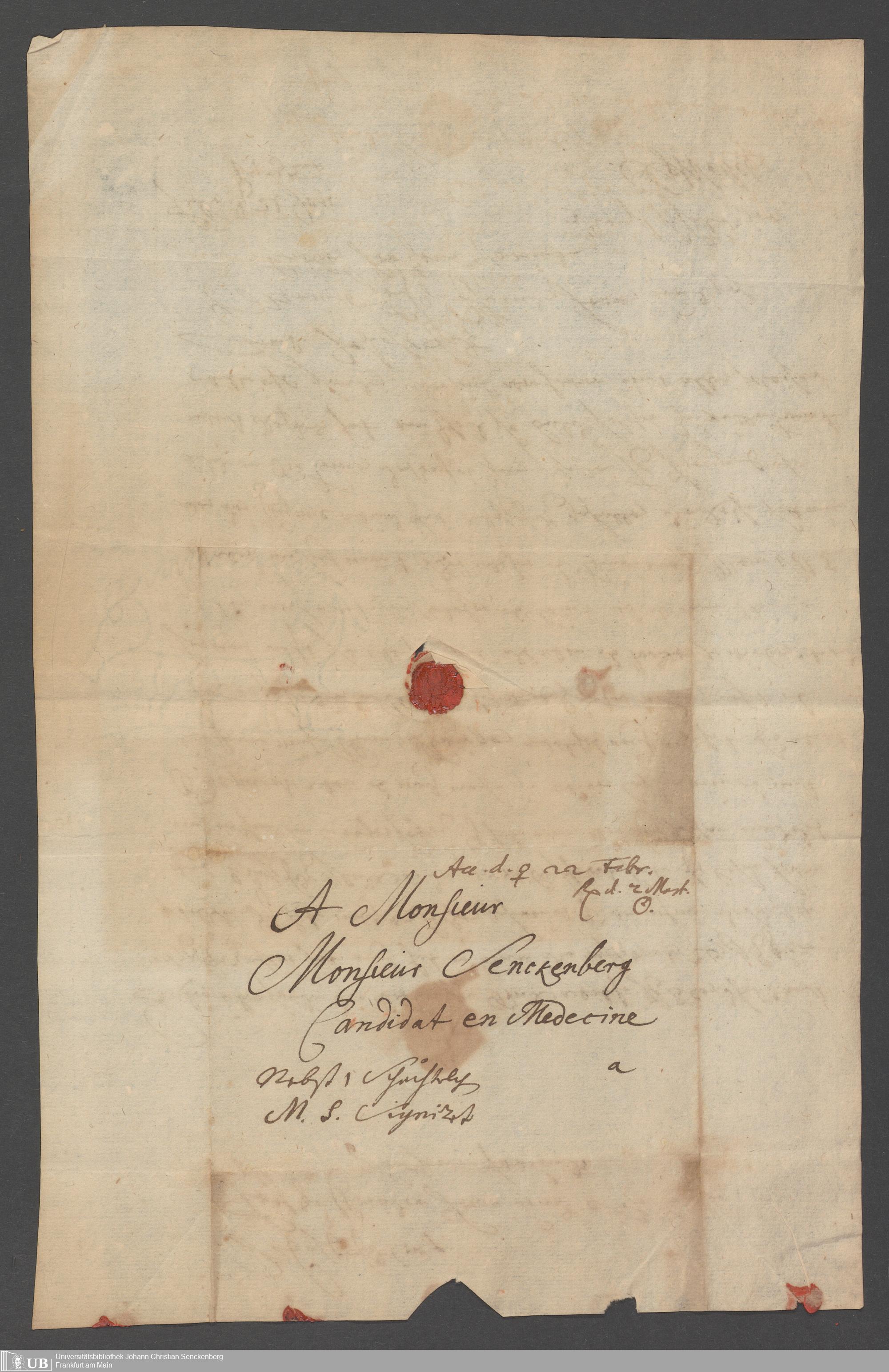 Na 31 Nachlass Johann Christian Senckenberg, 111 - Briefe an Johann Christian Senckenberg von verschiedenen Absendern (E-Z) (p. I.1.g.50)