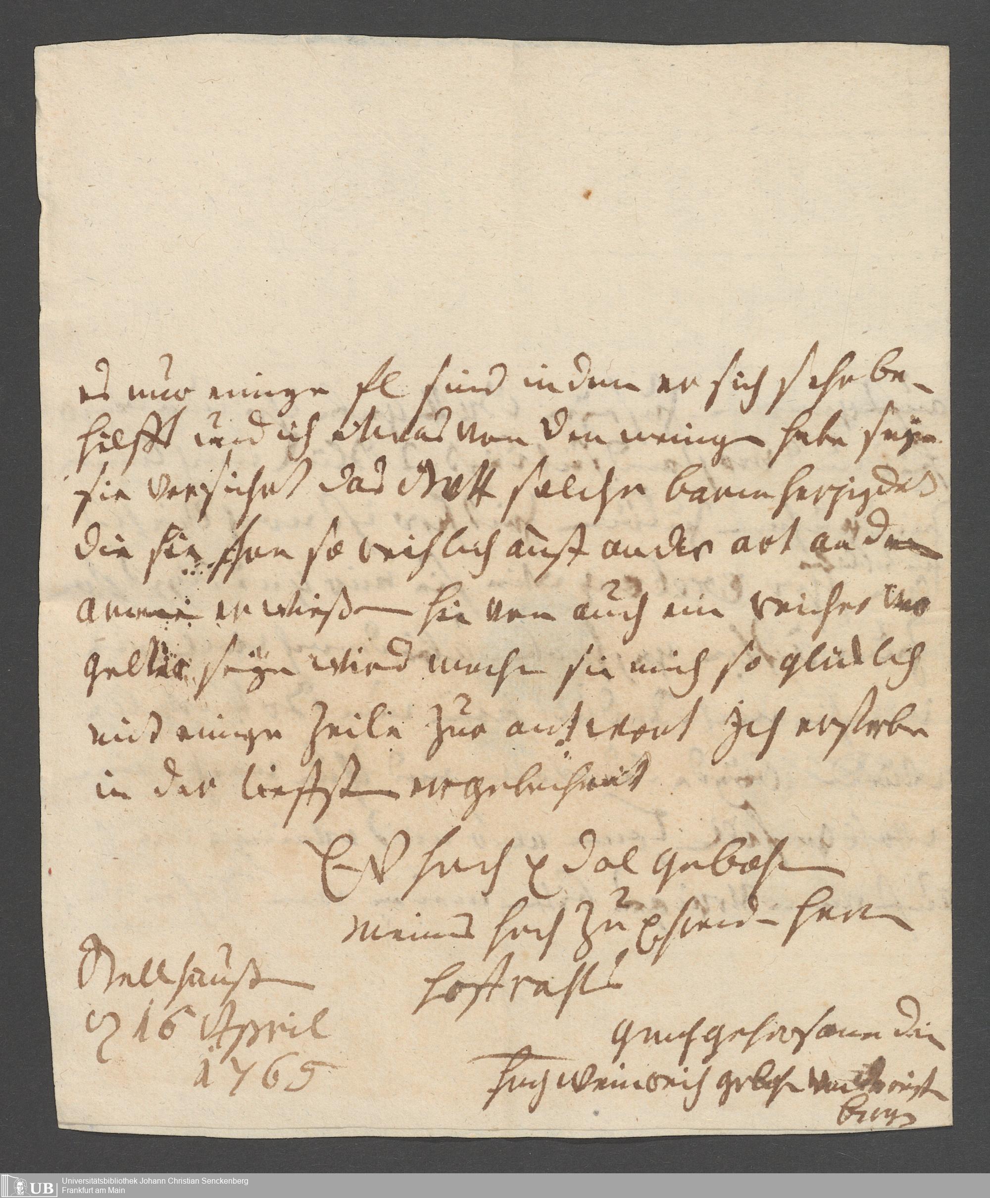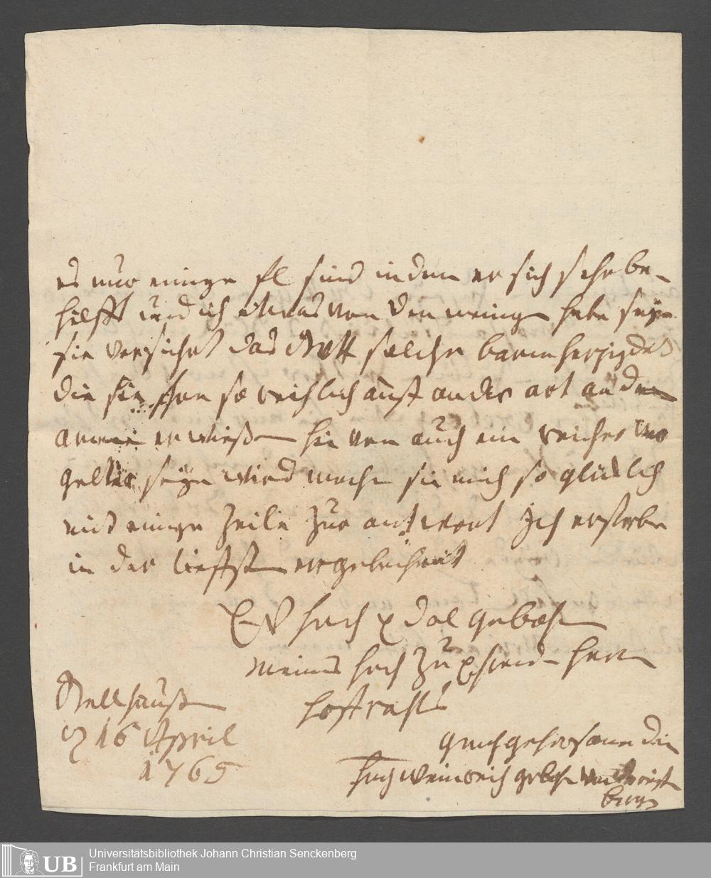 Na 31 Nachlass Johann Christian Senckenberg, 111 - Briefe an Johann Christian Senckenberg von verschiedenen Absendern (E-Z) (p. I.1.g.50)