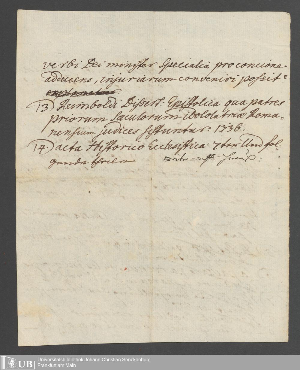 Na 31 Nachlass Johann Christian Senckenberg, 111 - Briefe an Johann Christian Senckenberg von verschiedenen Absendern (E-Z) (p. I.1.g.50)
