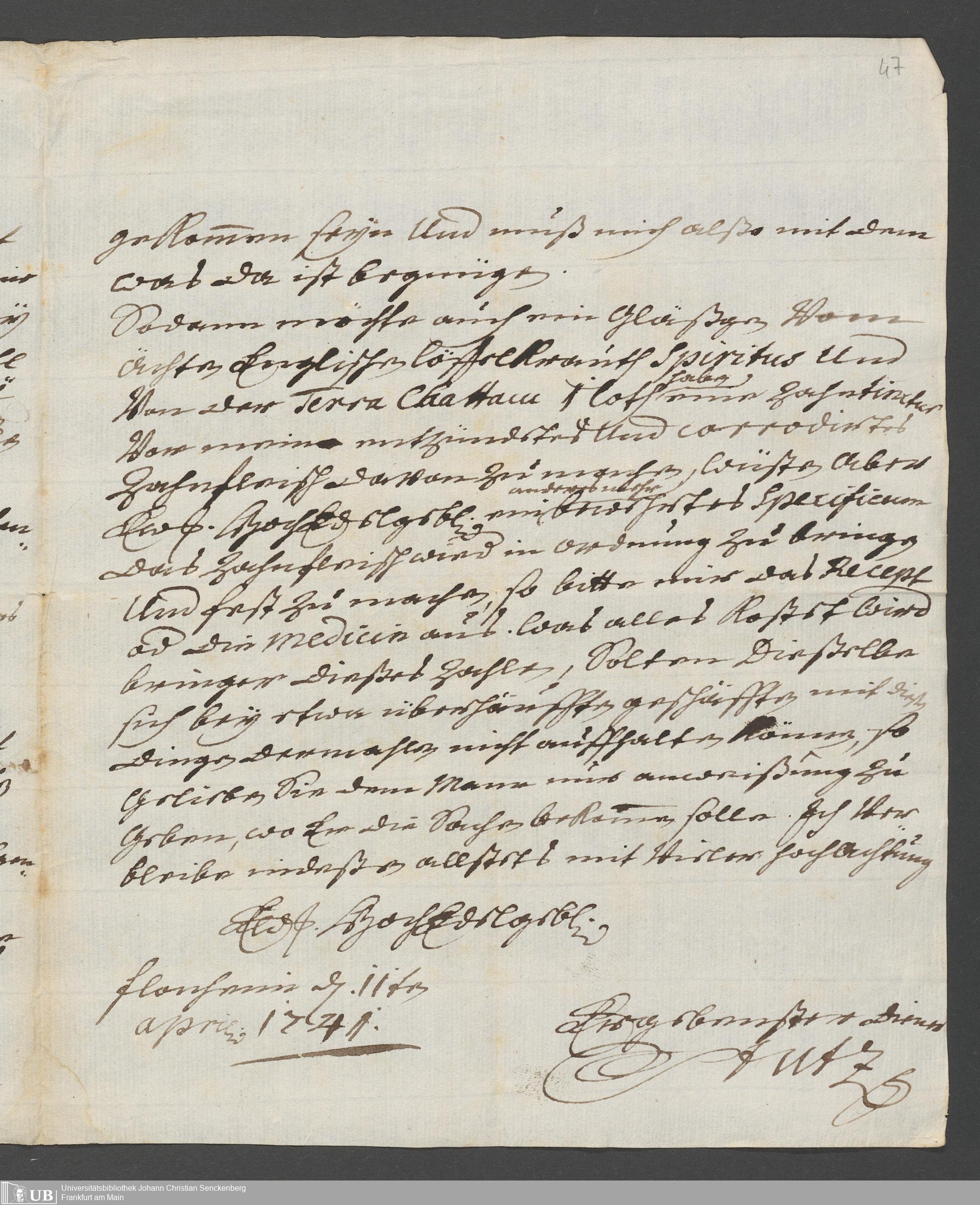 Na 31 Nachlass Johann Christian Senckenberg, 111 - Briefe an Johann Christian Senckenberg von verschiedenen Absendern (E-Z) (p. I.1.g.50)