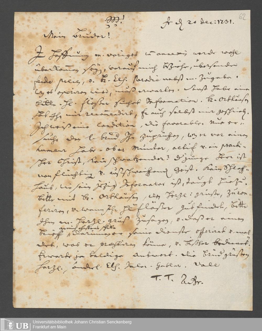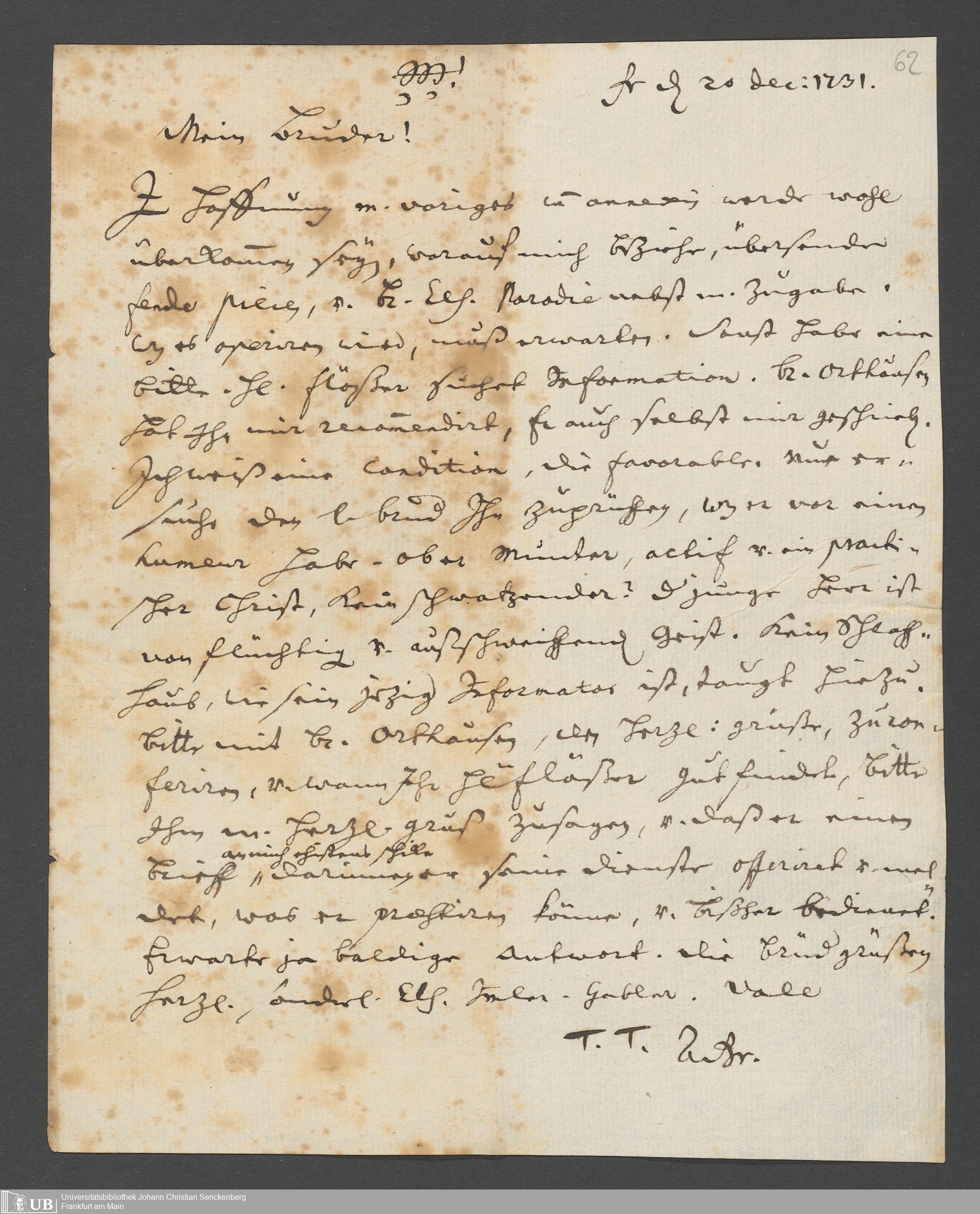 Na 31 Nachlass Johann Christian Senckenberg, 111 - Briefe an Johann Christian Senckenberg von verschiedenen Absendern (E-Z) (p. I.1.g.50)