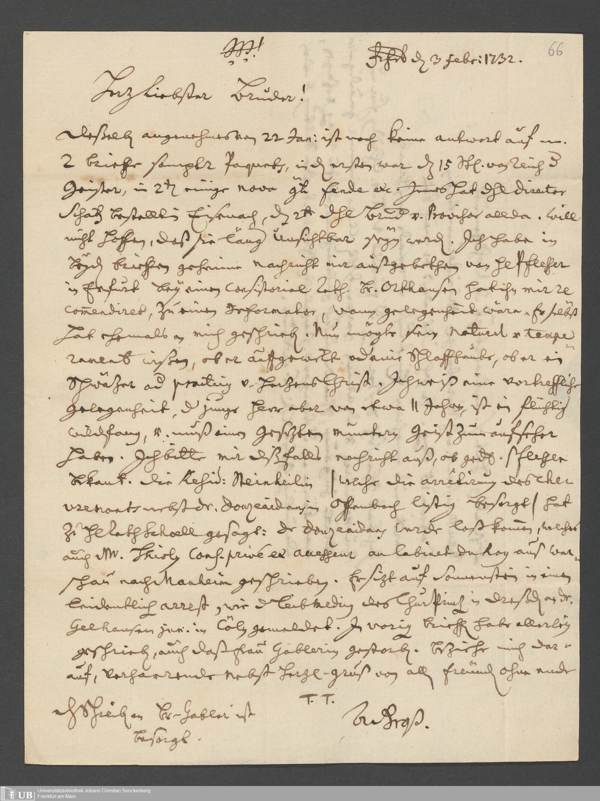 Na 31 Nachlass Johann Christian Senckenberg, 111 - Briefe an Johann Christian Senckenberg von verschiedenen Absendern (E-Z) (p. I.1.g.50)