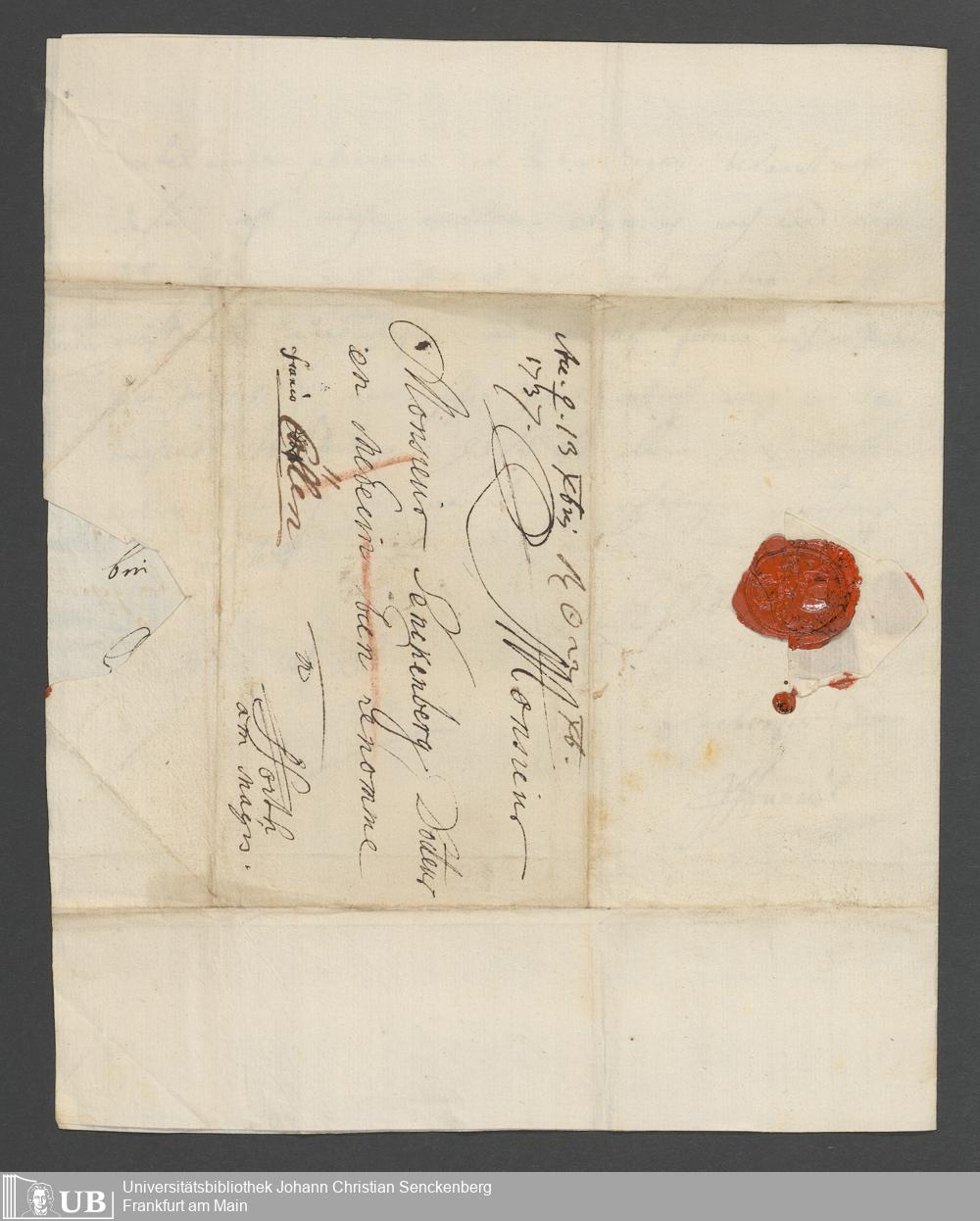 Na 31 Nachlass Johann Christian Senckenberg, 111 - Briefe an Johann Christian Senckenberg von verschiedenen Absendern (E-Z) (p. I.1.g.50)