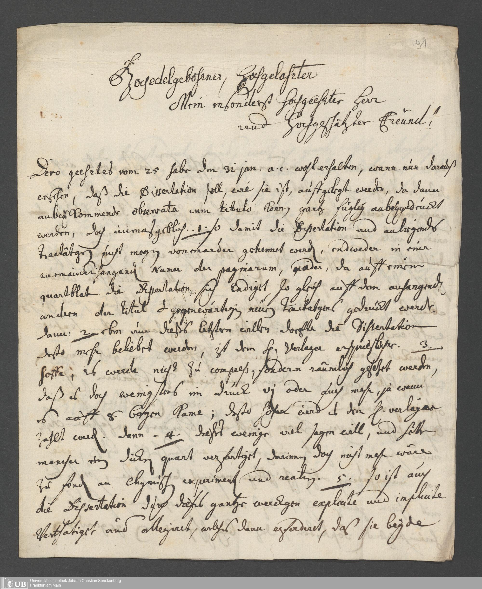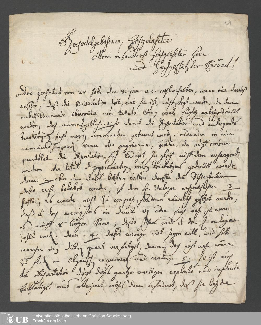 Na 31 Nachlass Johann Christian Senckenberg, 111 - Briefe an Johann Christian Senckenberg von verschiedenen Absendern (E-Z) (p. I.1.g.50)