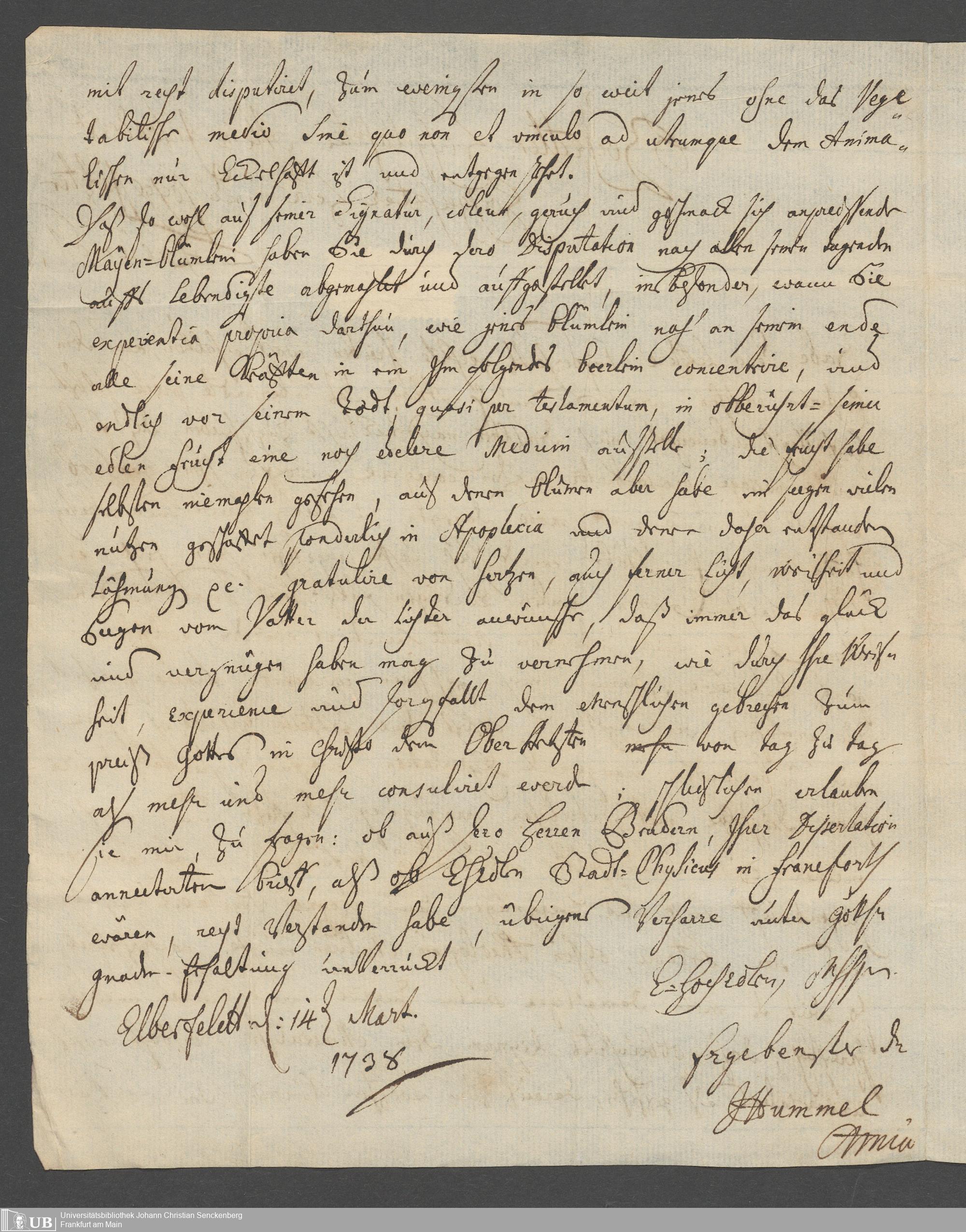 Na 31 Nachlass Johann Christian Senckenberg, 111 - Briefe an Johann Christian Senckenberg von verschiedenen Absendern (E-Z) (p. I.1.g.50)
