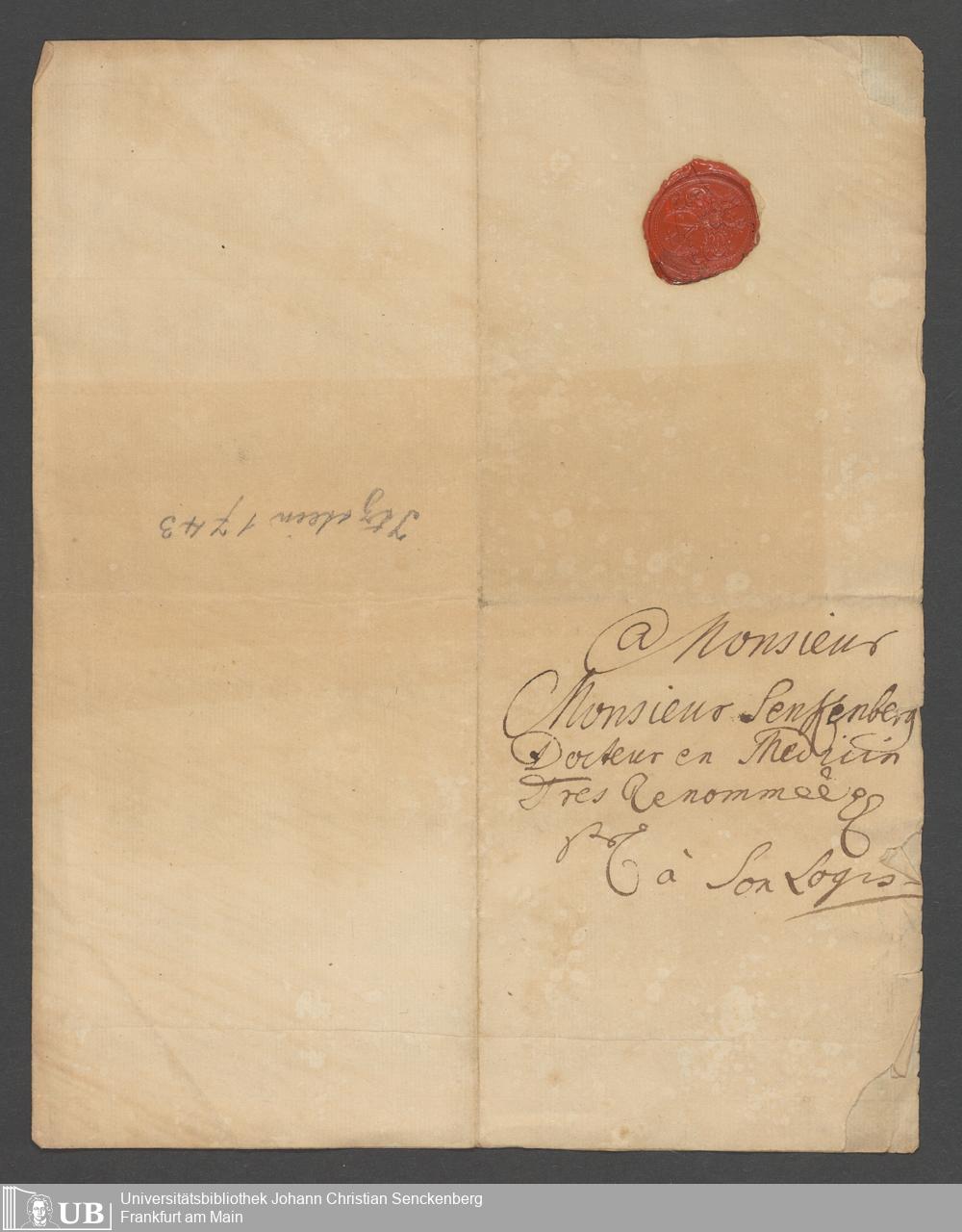 Na 31 Nachlass Johann Christian Senckenberg, 111 - Briefe an Johann Christian Senckenberg von verschiedenen Absendern (E-Z) (p. I.1.g.50)