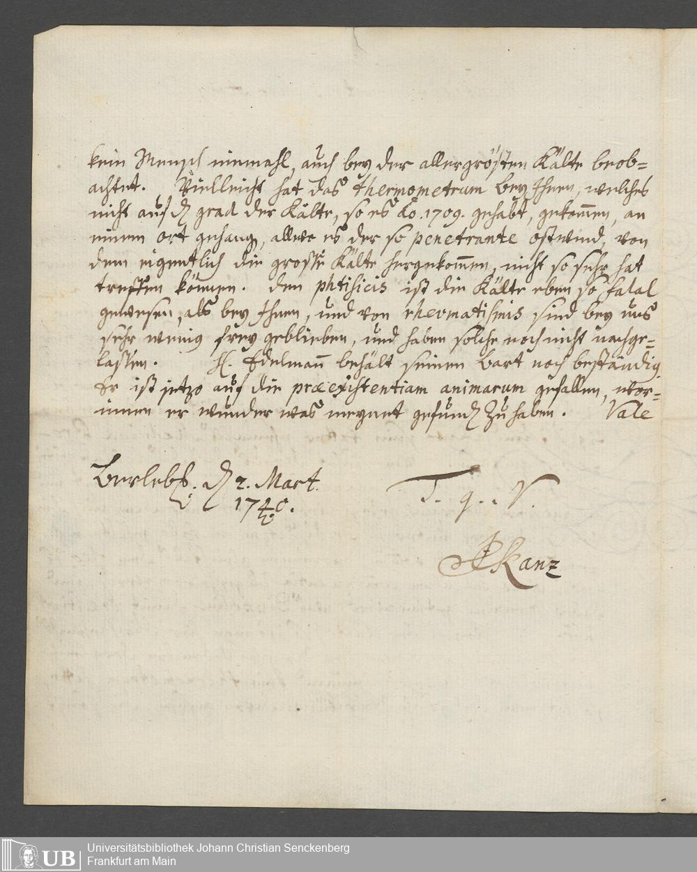 Na 31 Nachlass Johann Christian Senckenberg, 111 - Briefe an Johann Christian Senckenberg von verschiedenen Absendern (E-Z) (p. I.1.g.50)