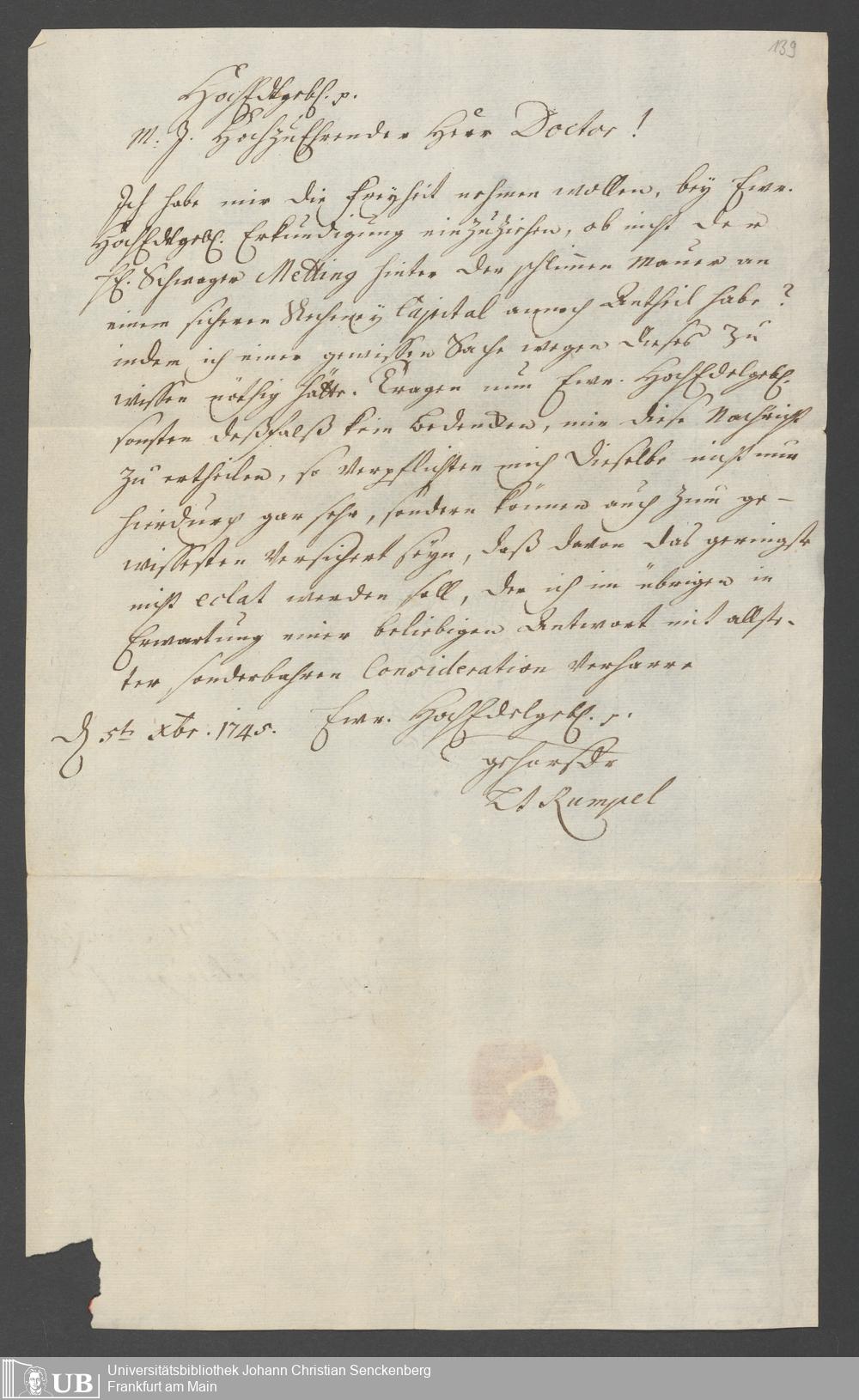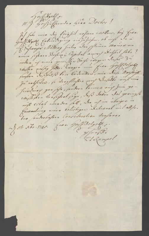 Na 31 Nachlass Johann Christian Senckenberg, 111 - Briefe an Johann Christian Senckenberg von verschiedenen Absendern (E-Z) (p. I.1.g.50)