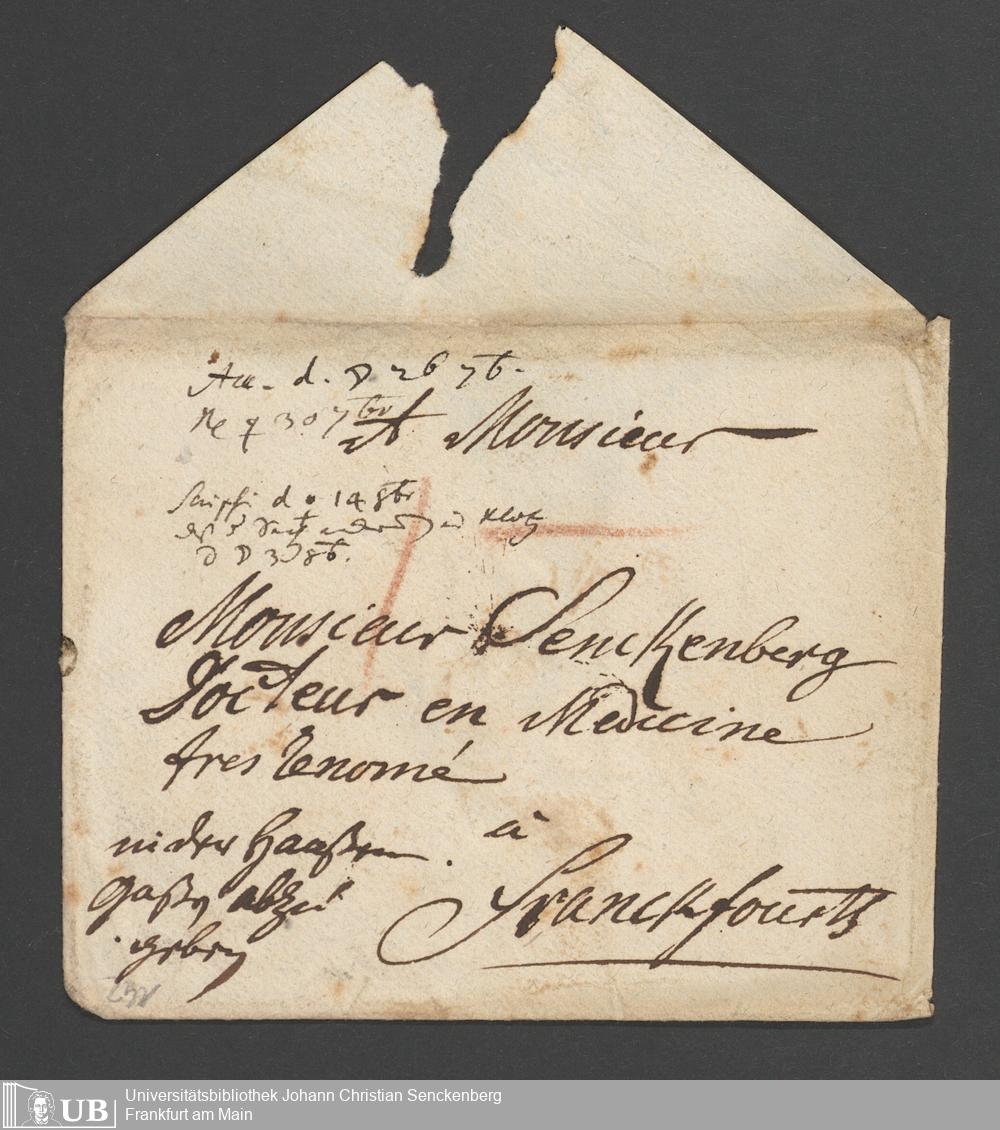 Na 31 Nachlass Johann Christian Senckenberg, 111 - Briefe an Johann Christian Senckenberg von verschiedenen Absendern (E-Z) (p. I.1.g.50)