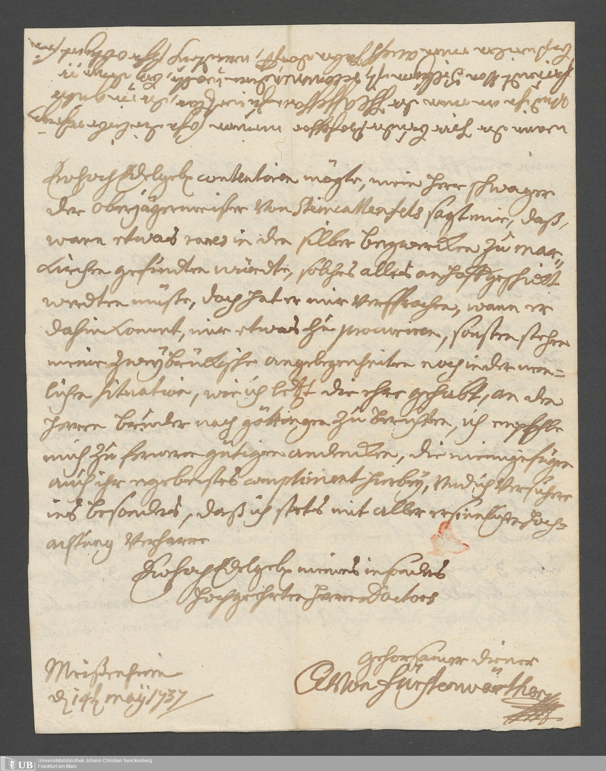Na 31 Nachlass Johann Christian Senckenberg, 111 - Briefe an Johann Christian Senckenberg von verschiedenen Absendern (E-Z) (p. I.1.g.50)