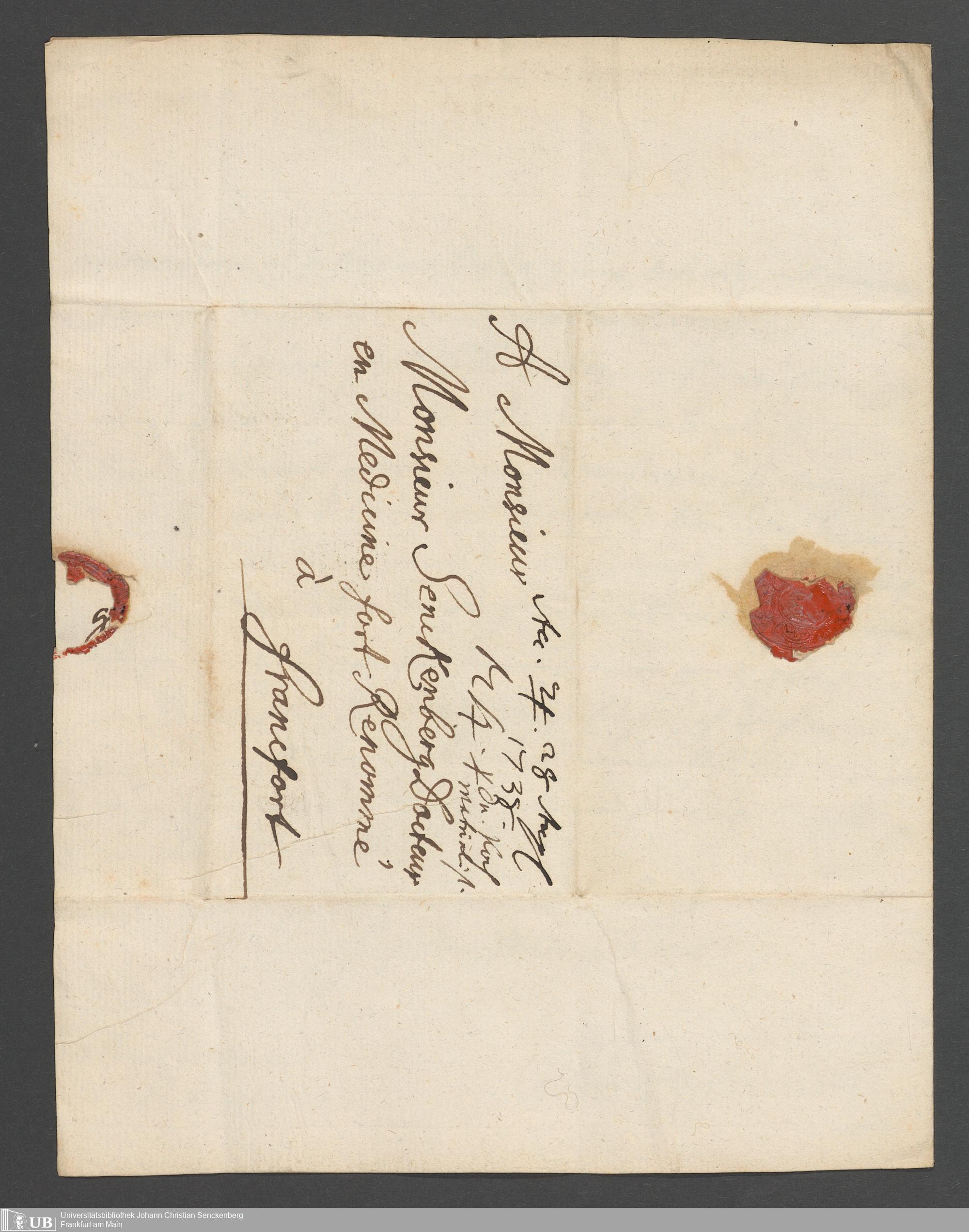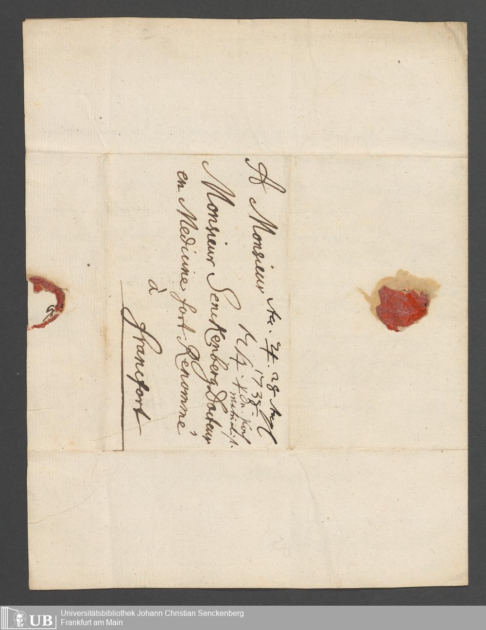 Na 31 Nachlass Johann Christian Senckenberg, 111 - Briefe an Johann Christian Senckenberg von verschiedenen Absendern (E-Z) (p. I.1.g.50)