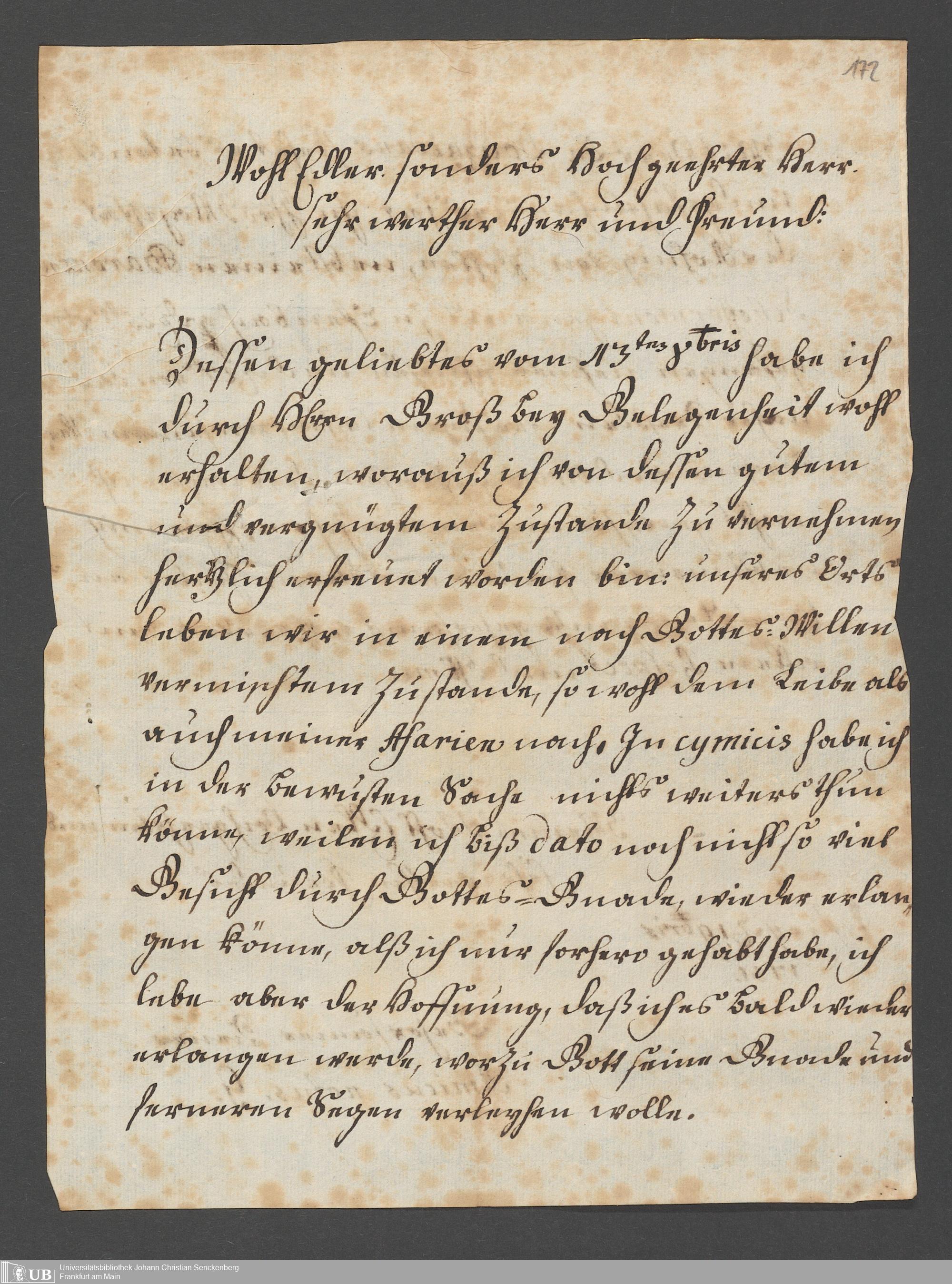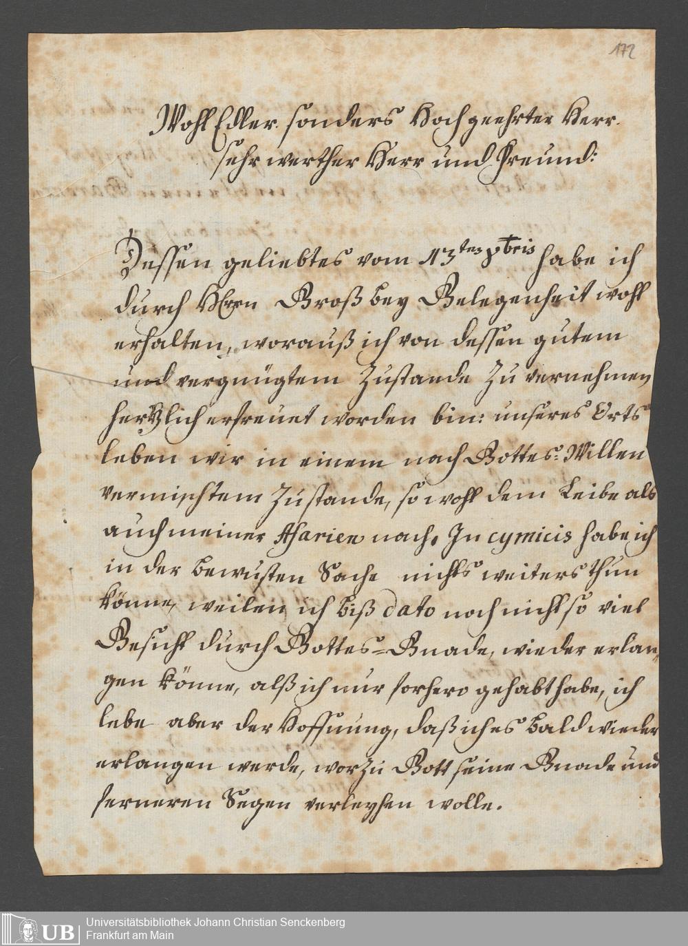 Na 31 Nachlass Johann Christian Senckenberg, 111 - Briefe an Johann Christian Senckenberg von verschiedenen Absendern (E-Z) (p. I.1.g.50)