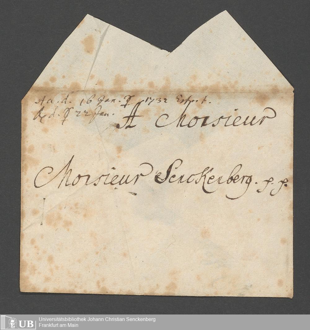 Na 31 Nachlass Johann Christian Senckenberg, 111 - Briefe an Johann Christian Senckenberg von verschiedenen Absendern (E-Z) (p. I.1.g.50)