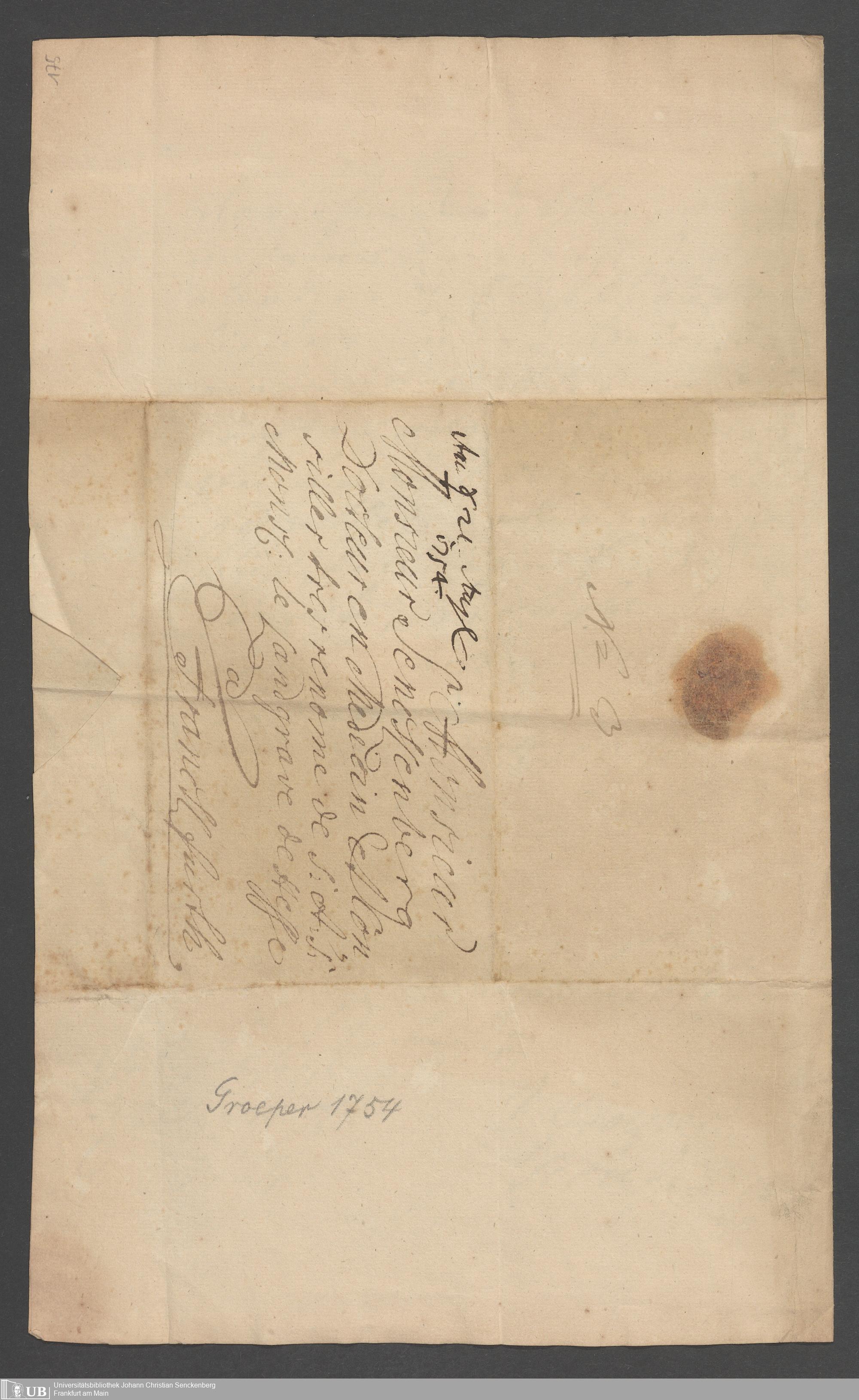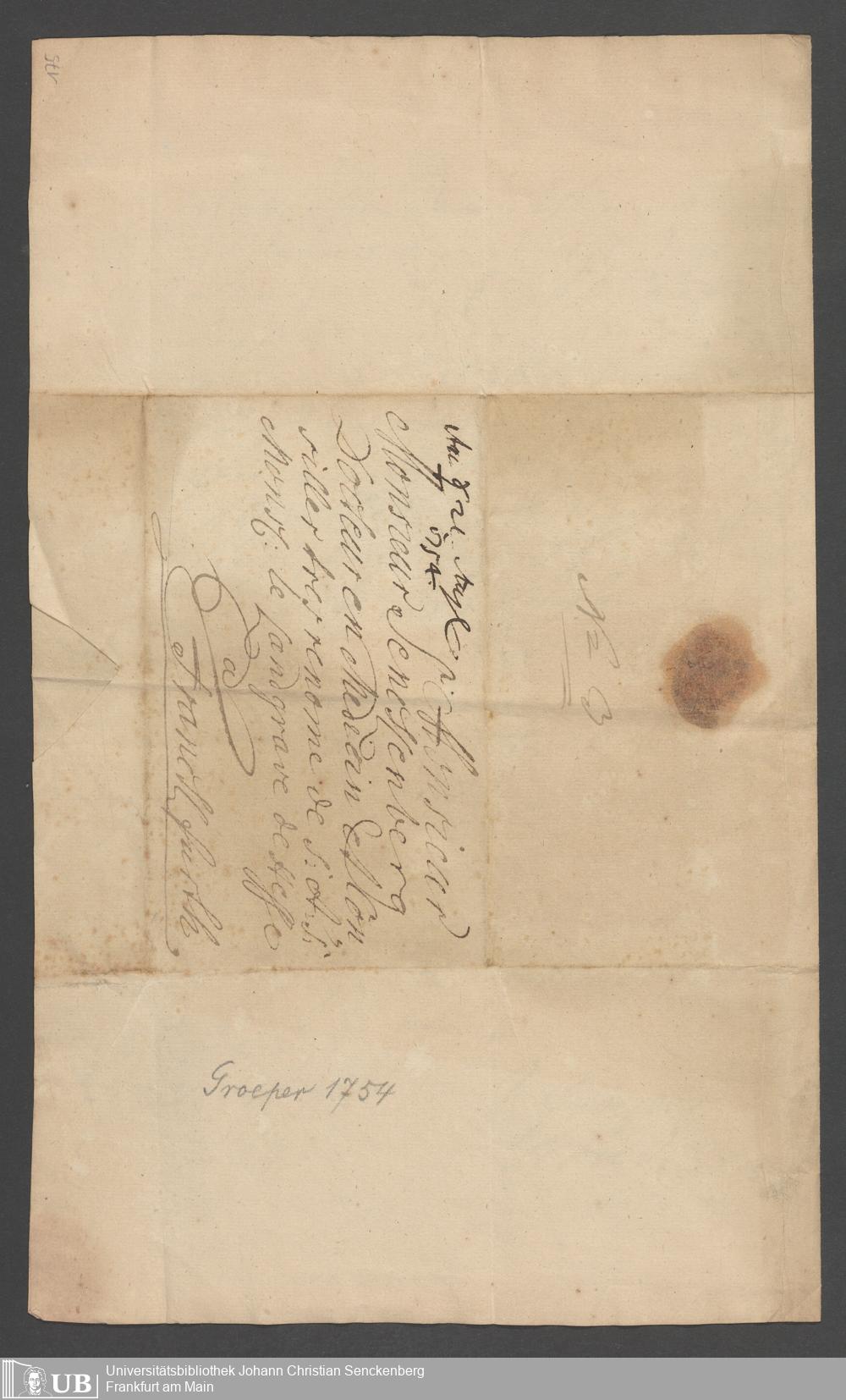 Na 31 Nachlass Johann Christian Senckenberg, 111 - Briefe an Johann Christian Senckenberg von verschiedenen Absendern (E-Z) (p. I.1.g.50)