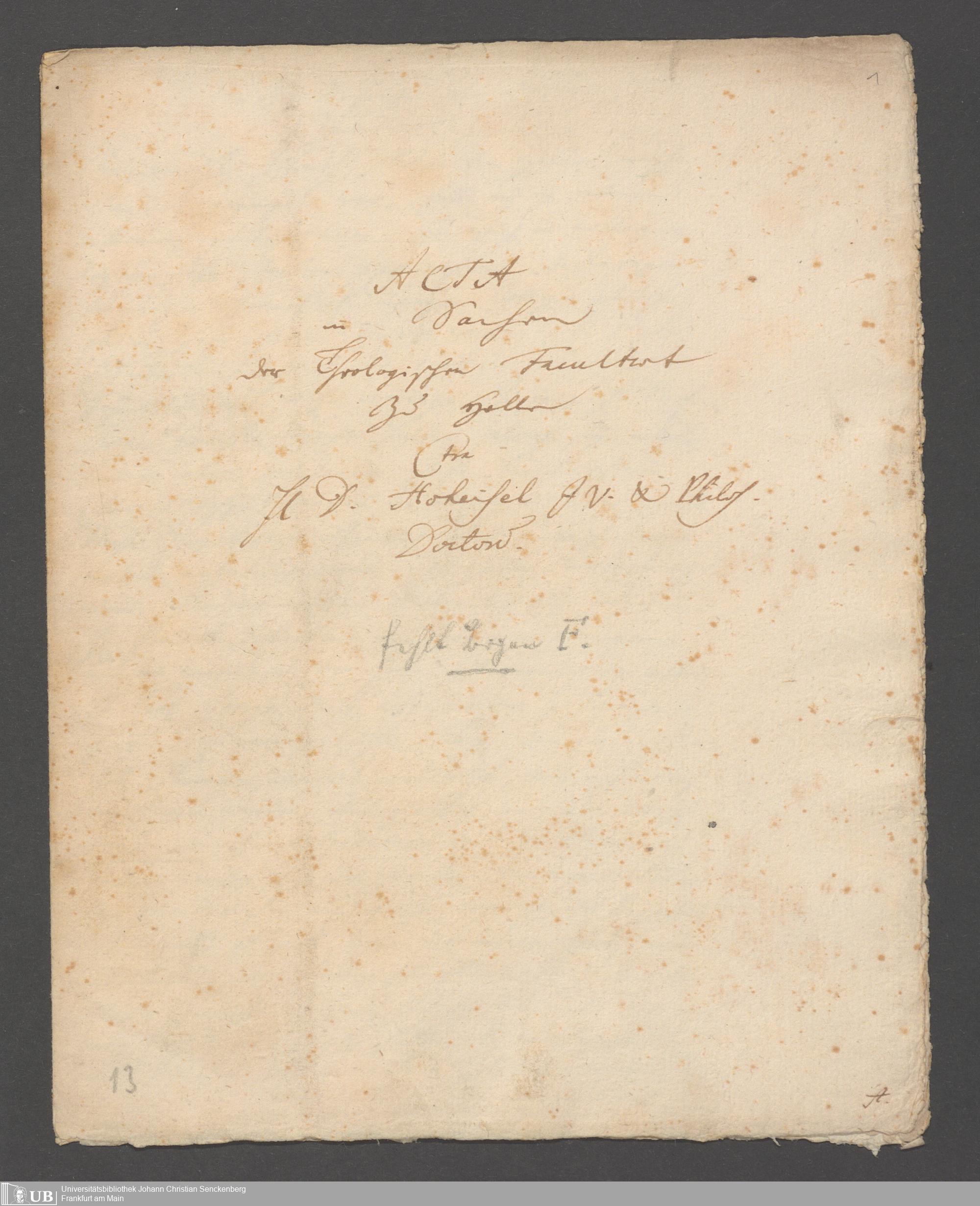 Na 31 Nachlass Johann Christian Senckenberg, 147 - Aufzeichnungen zum Fall der Theologischen Fakultät zu Halle gegen Dr. Hoheisel