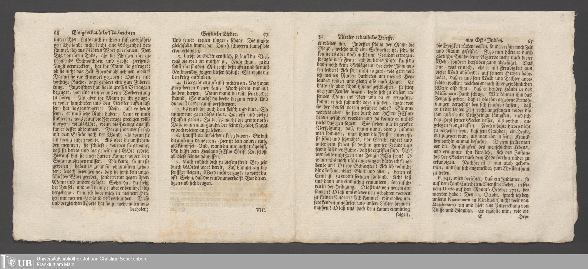 Na 31 Nachlass Johann Christian Senckenberg, 148 - Nikolaus Ludwig von Zinsendorfs "Altes und Neues aus dem Reich Gottes" (2 Bände) (p. I.2.b.80)