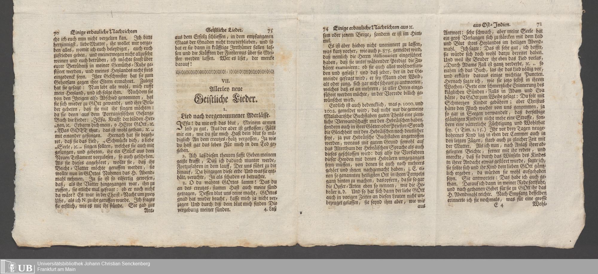 Na 31 Nachlass Johann Christian Senckenberg, 148 - Nikolaus Ludwig von Zinsendorfs "Altes und Neues aus dem Reich Gottes" (2 Bände) (p. I.2.b.80)