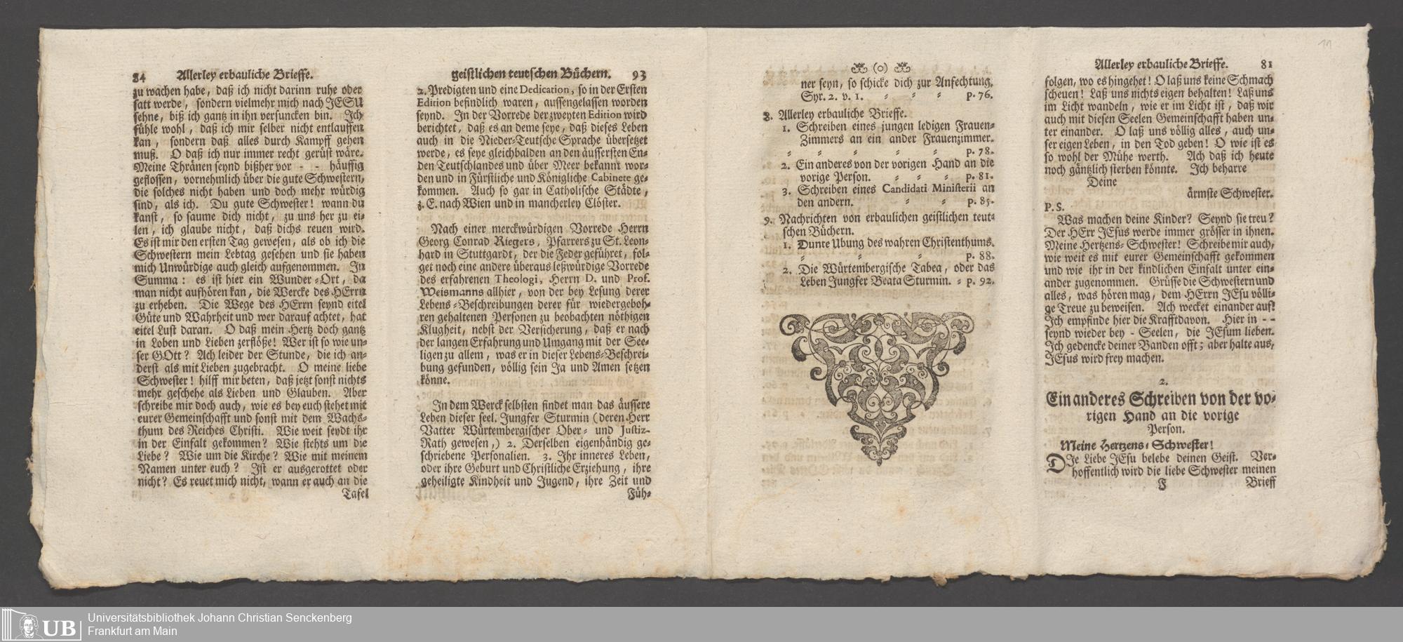 Na 31 Nachlass Johann Christian Senckenberg, 148 - Nikolaus Ludwig von Zinsendorfs "Altes und Neues aus dem Reich Gottes" (2 Bände) (p. I.2.b.80)