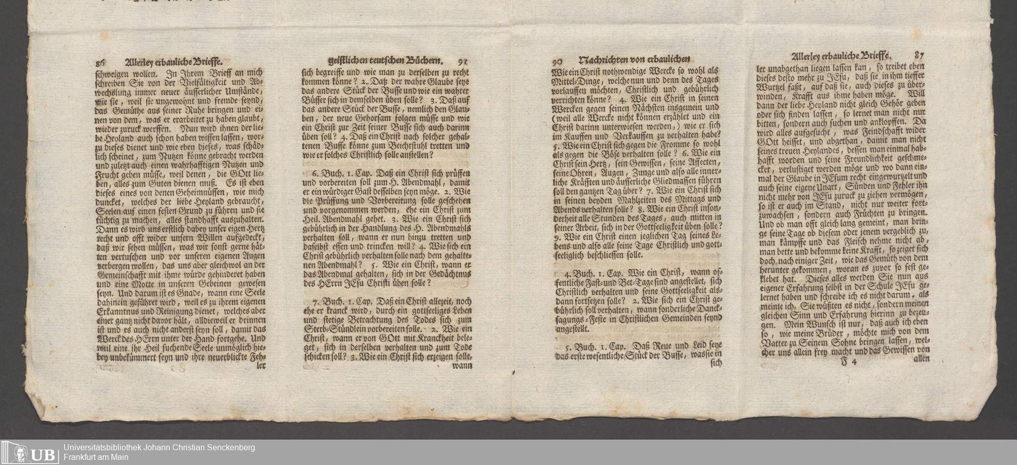 Na 31 Nachlass Johann Christian Senckenberg, 148 - Nikolaus Ludwig von Zinsendorfs "Altes und Neues aus dem Reich Gottes" (2 Bände) (p. I.2.b.80)
