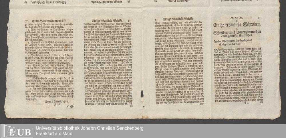 Na 31 Nachlass Johann Christian Senckenberg, 148 - Nikolaus Ludwig von Zinsendorfs "Altes und Neues aus dem Reich Gottes" (2 Bände) (p. I.2.b.80)