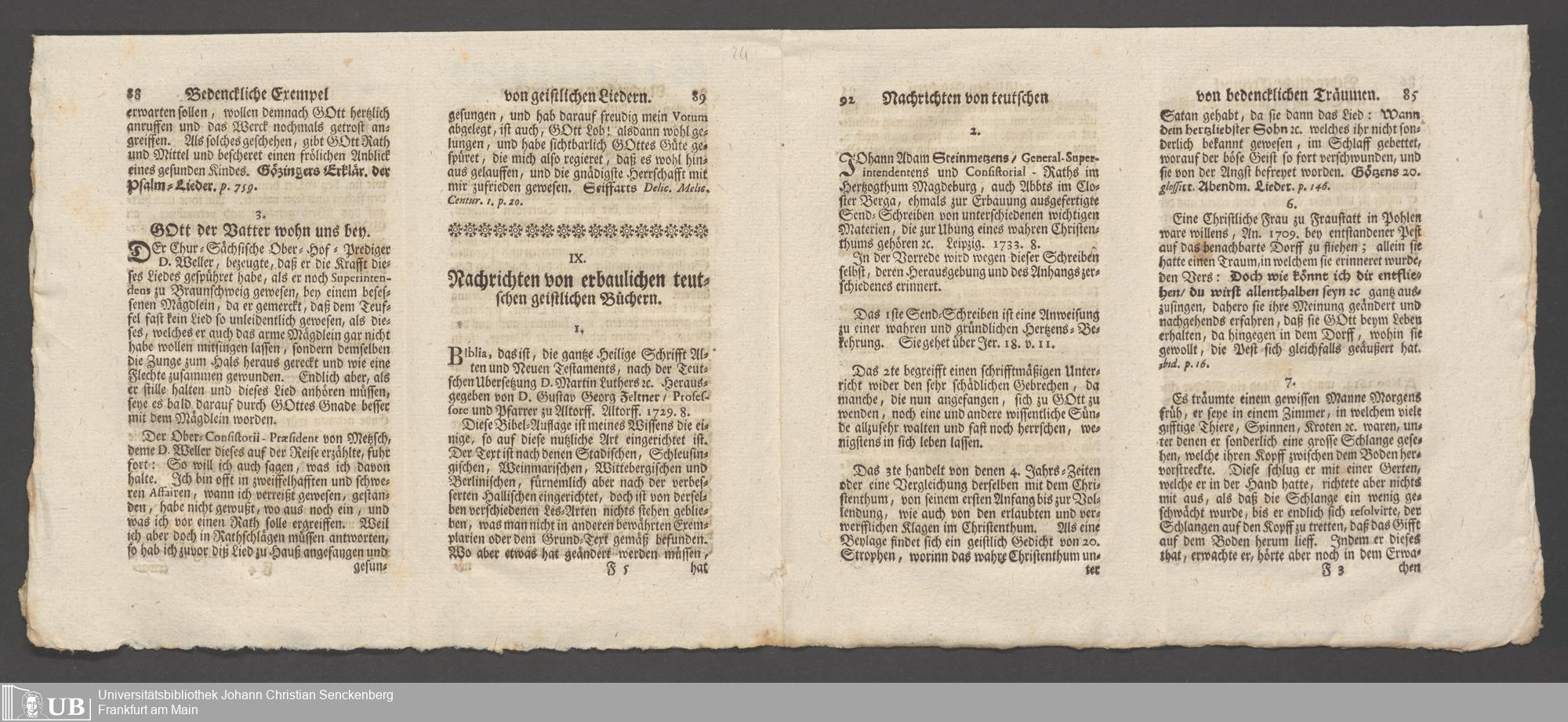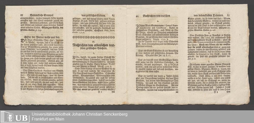 Na 31 Nachlass Johann Christian Senckenberg, 148 - Nikolaus Ludwig von Zinsendorfs "Altes und Neues aus dem Reich Gottes" (2 Bände) (p. I.2.b.80)