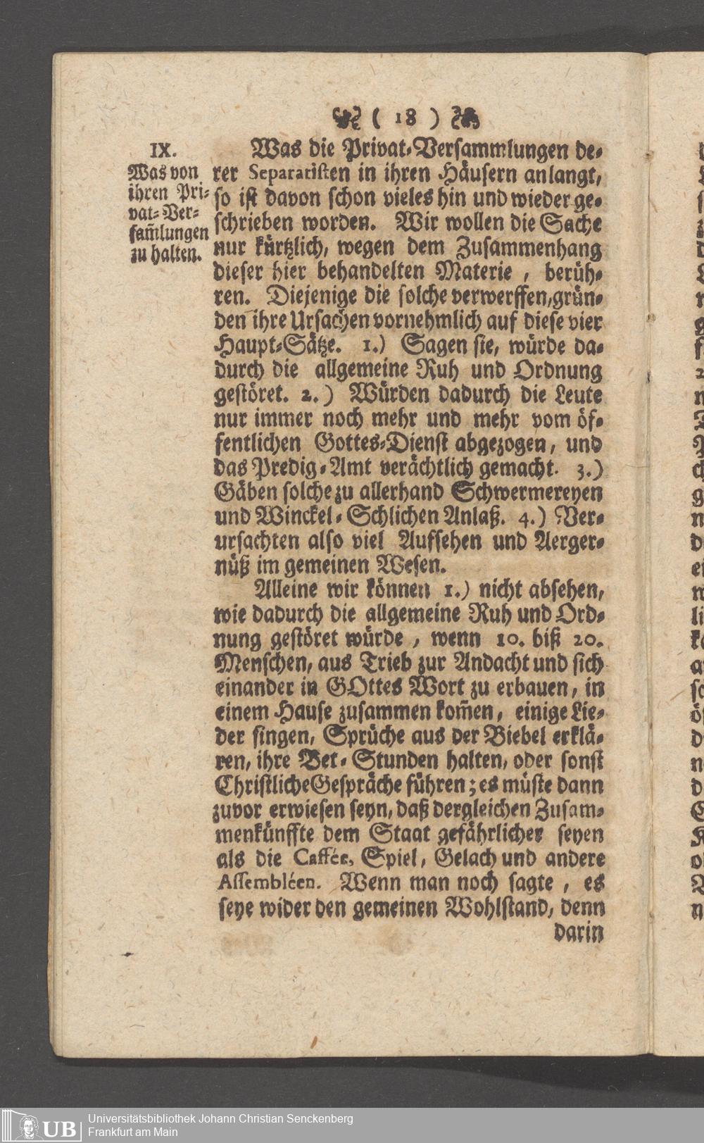 Na 31 Nachlass Johann Christian Senckenberg, 149 - Nikolaus Ludwig von Zinsendorf: "Bedenken vom Separatismo"; "Erklärung der Herrenhuthischen Brüder"