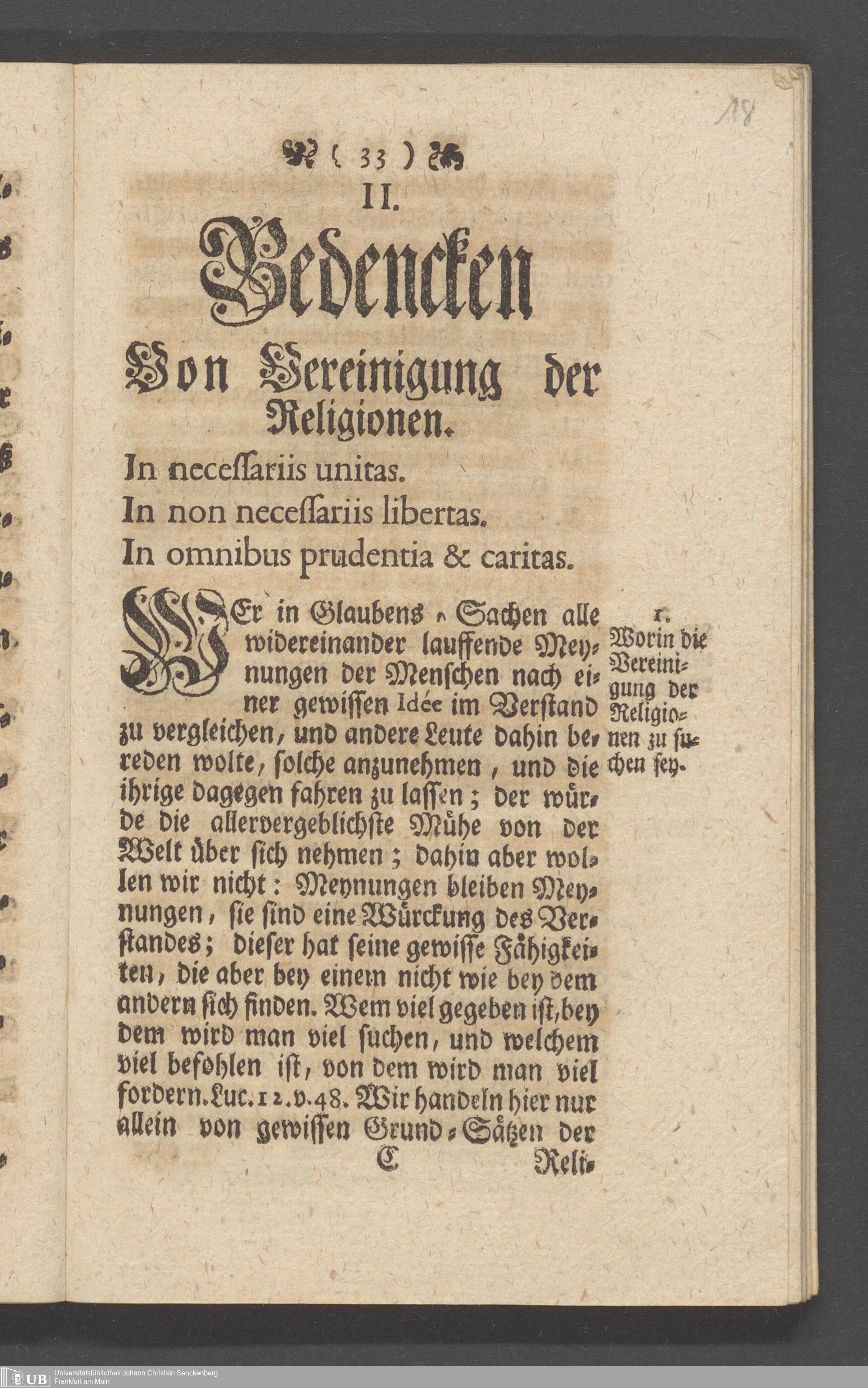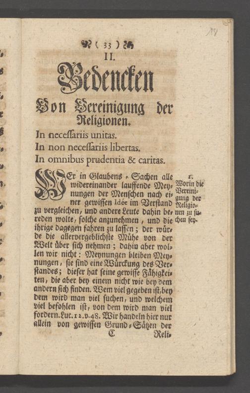 Na 31 Nachlass Johann Christian Senckenberg, 149 - Nikolaus Ludwig von Zinsendorf: "Bedenken vom Separatismo"; "Erklärung der Herrenhuthischen Brüder"