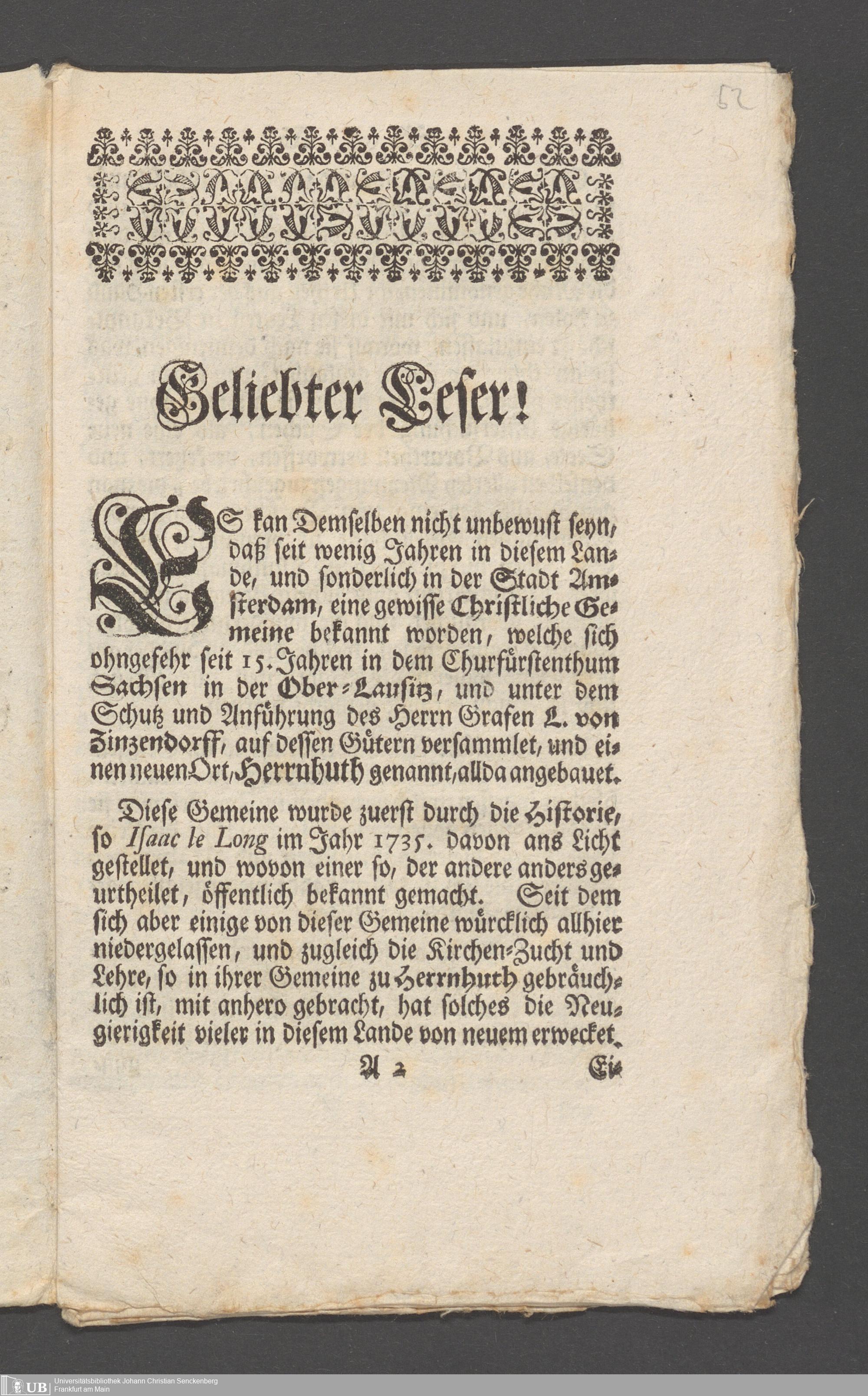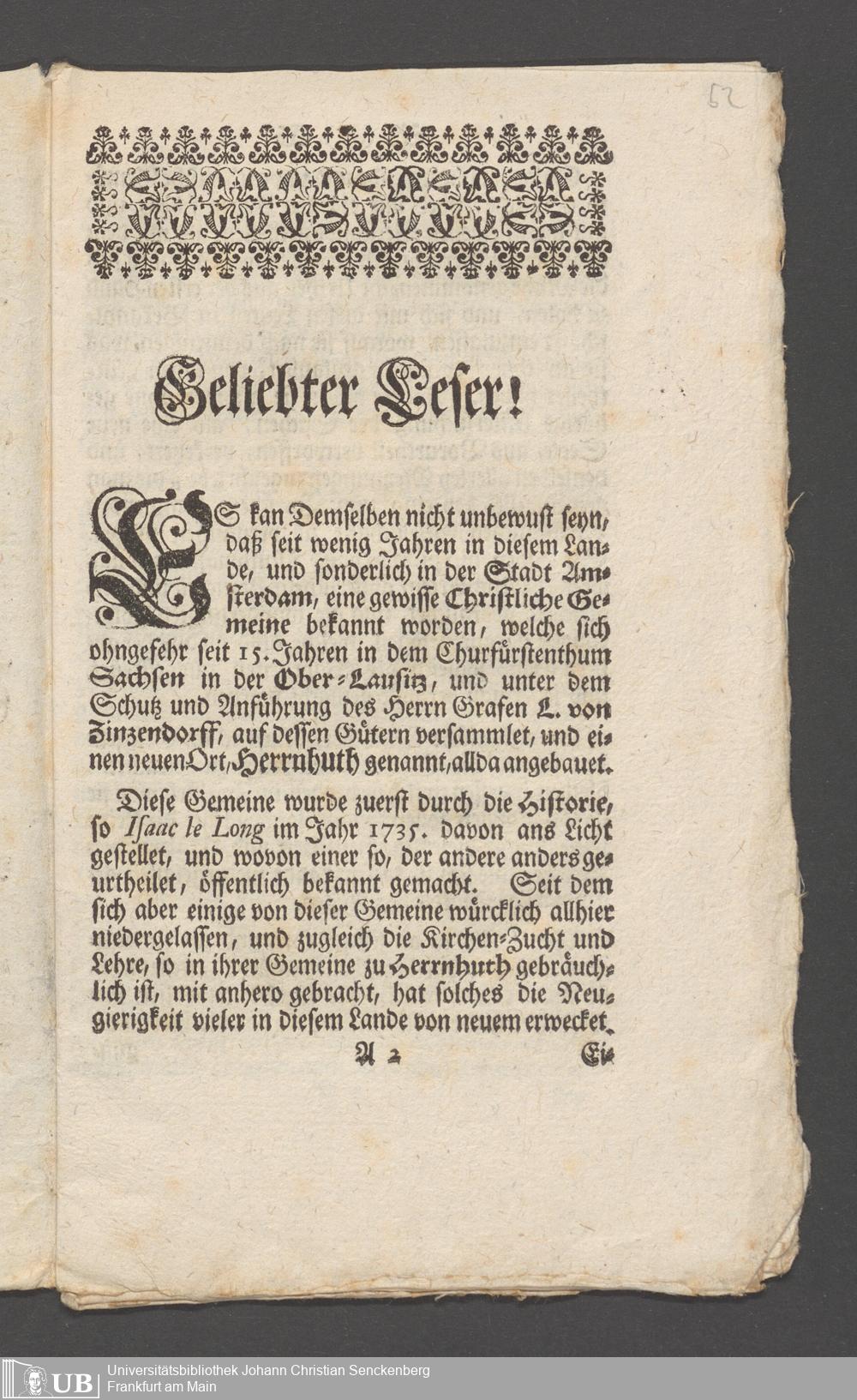 Na 31 Nachlass Johann Christian Senckenberg, 149 - Nikolaus Ludwig von Zinsendorf: "Bedenken vom Separatismo"; "Erklärung der Herrenhuthischen Brüder"