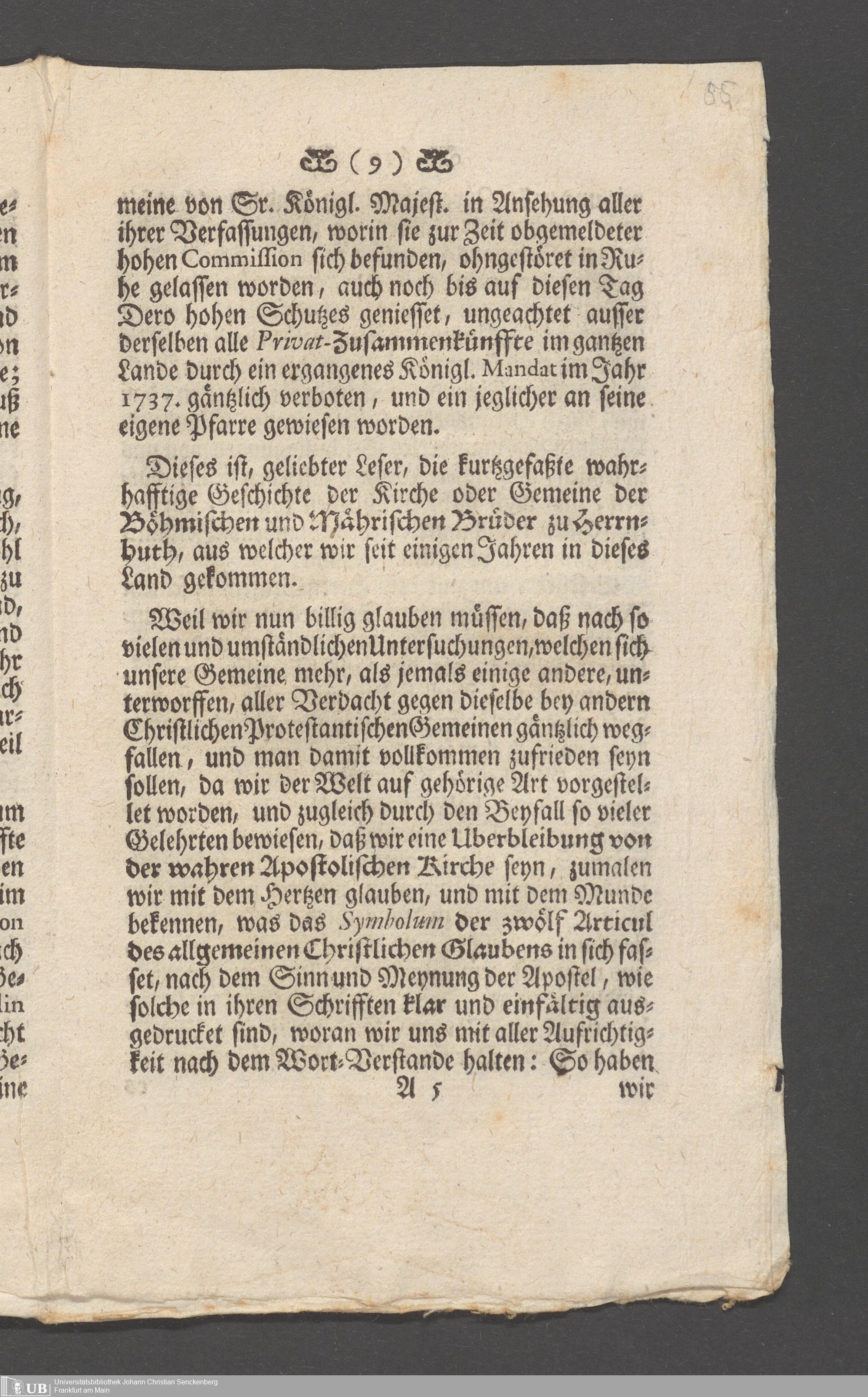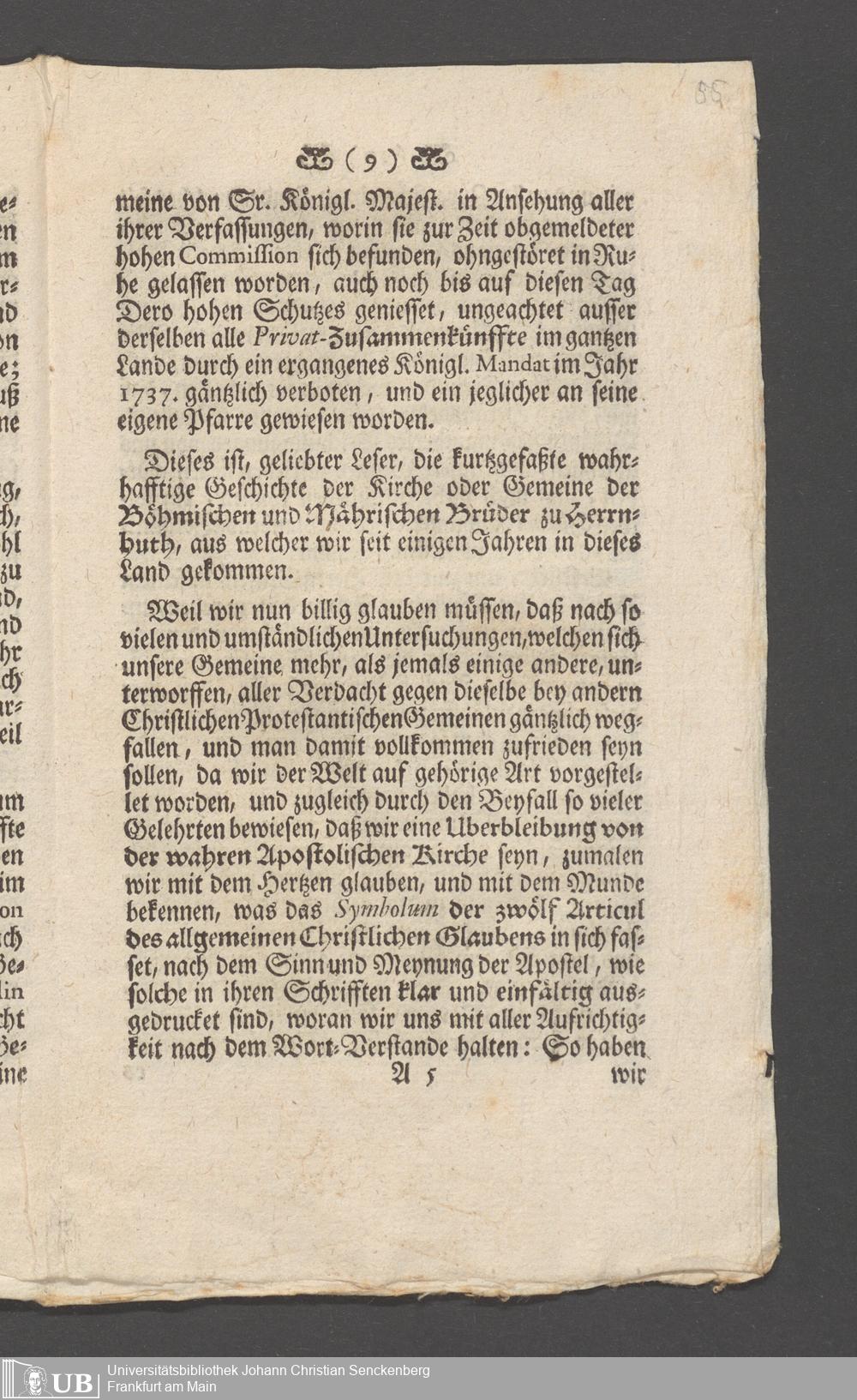 Na 31 Nachlass Johann Christian Senckenberg, 149 - Nikolaus Ludwig von Zinsendorf: "Bedenken vom Separatismo"; "Erklärung der Herrenhuthischen Brüder"