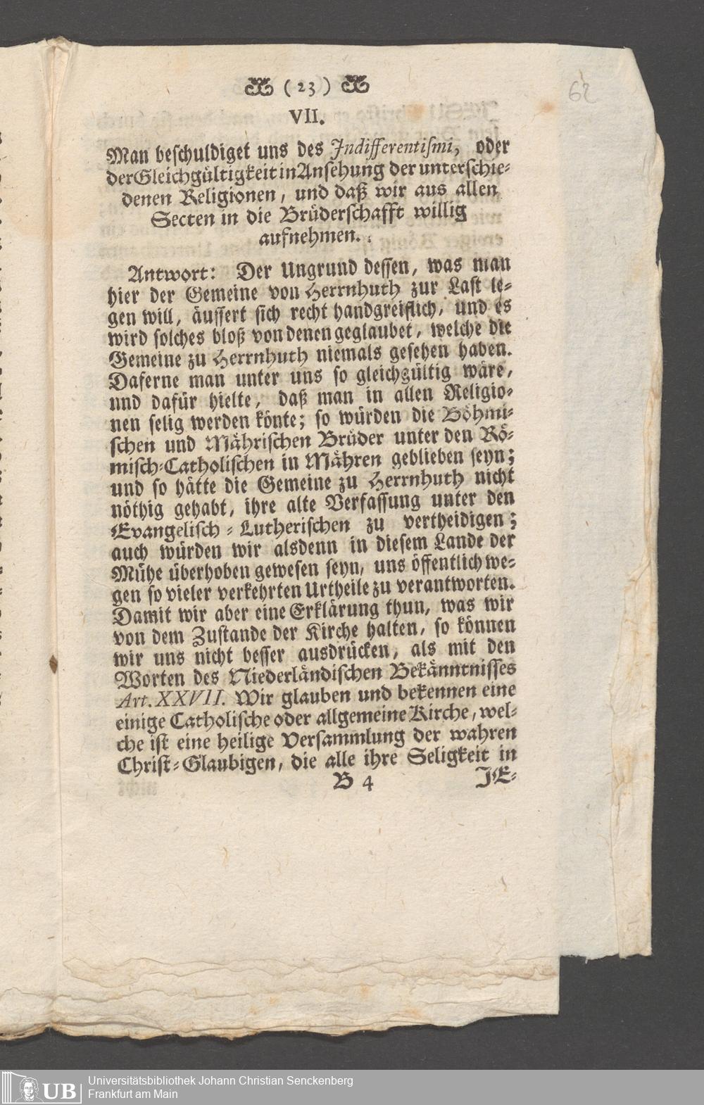 Na 31 Nachlass Johann Christian Senckenberg, 149 - Nikolaus Ludwig von Zinsendorf: "Bedenken vom Separatismo"; "Erklärung der Herrenhuthischen Brüder"