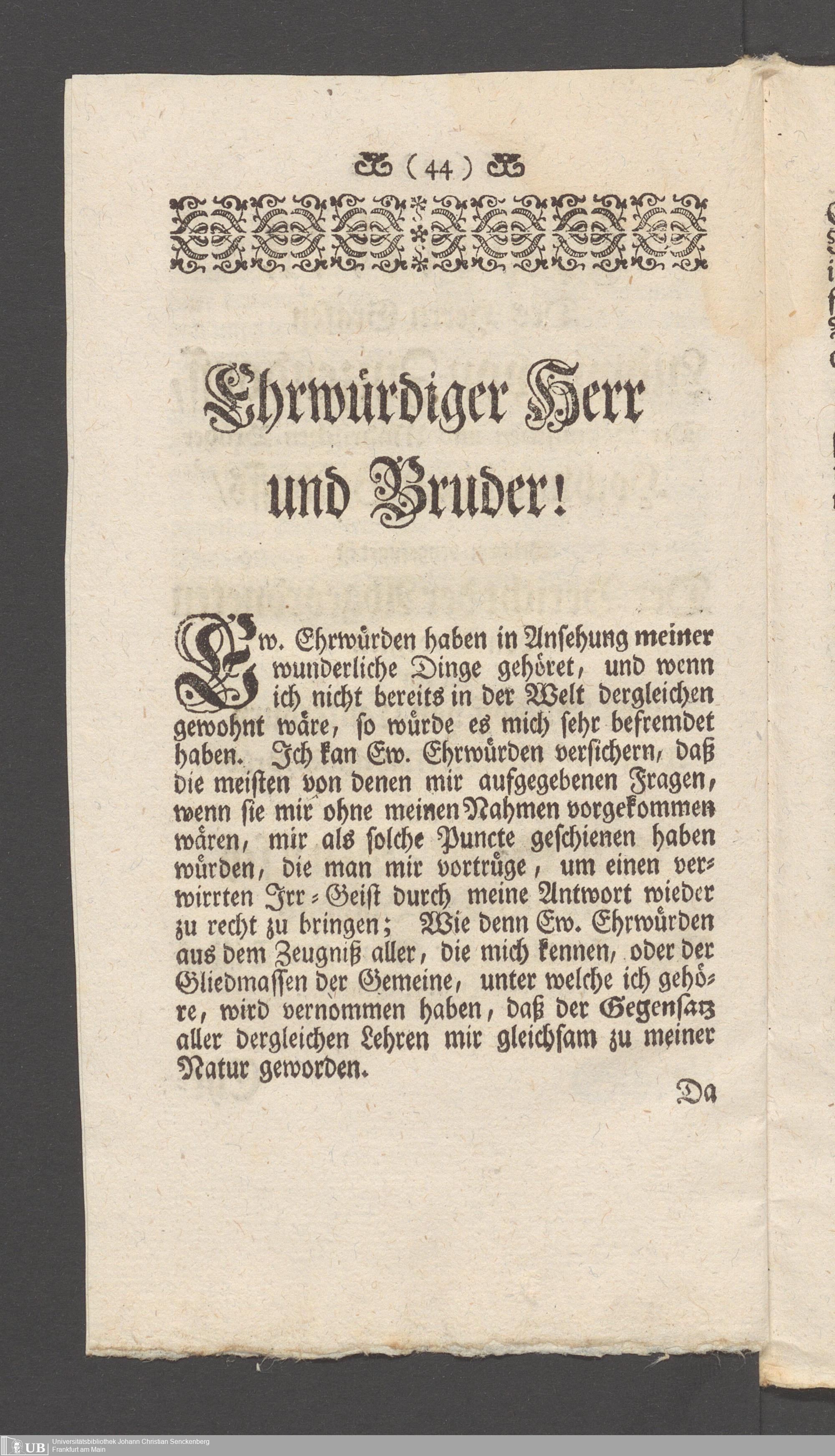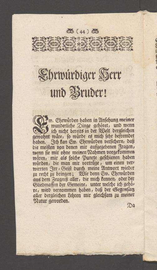 Na 31 Nachlass Johann Christian Senckenberg, 149 - Nikolaus Ludwig von Zinsendorf: "Bedenken vom Separatismo"; "Erklärung der Herrenhuthischen Brüder"