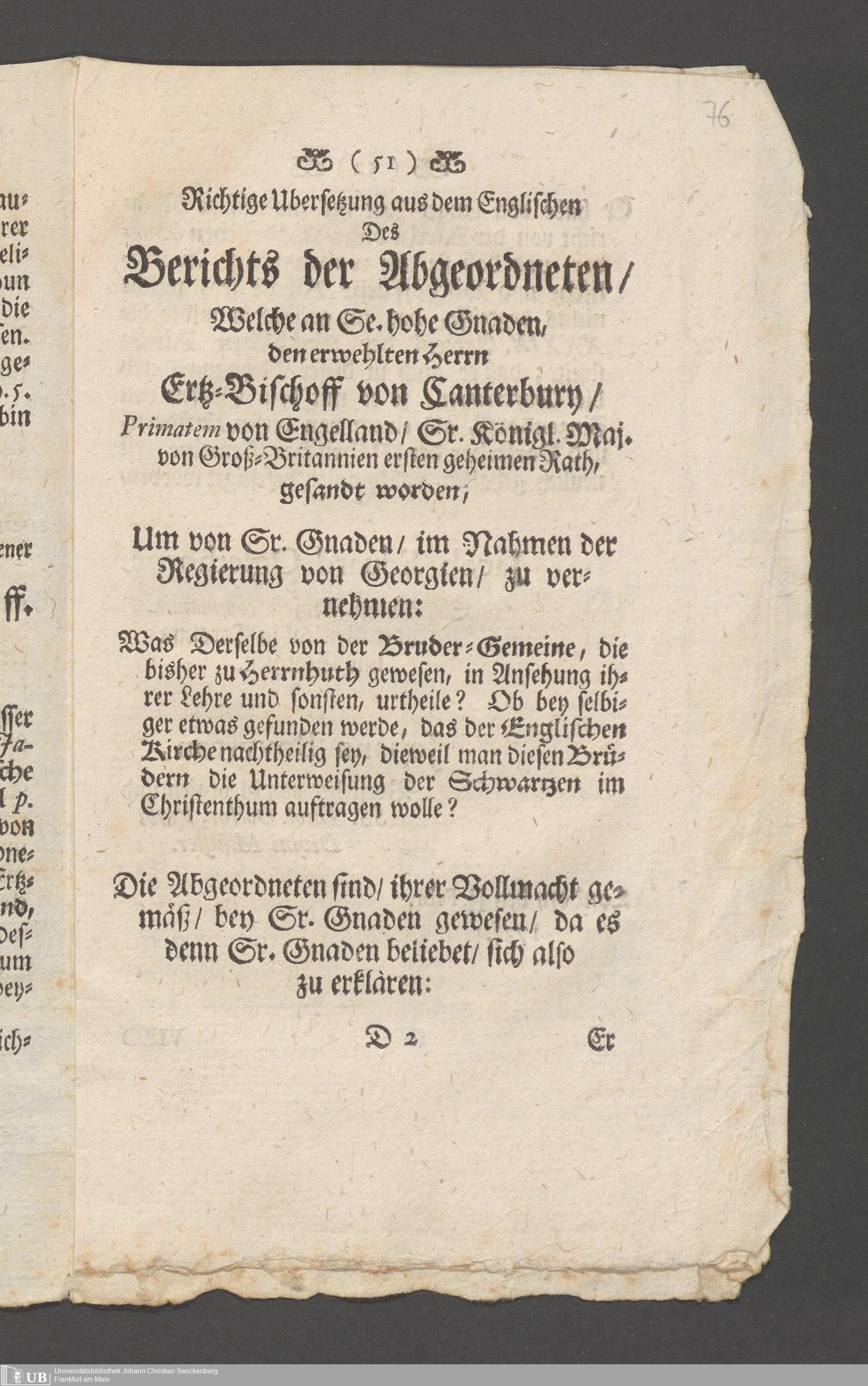 Na 31 Nachlass Johann Christian Senckenberg, 149 - Nikolaus Ludwig von Zinsendorf: "Bedenken vom Separatismo"; "Erklärung der Herrenhuthischen Brüder"